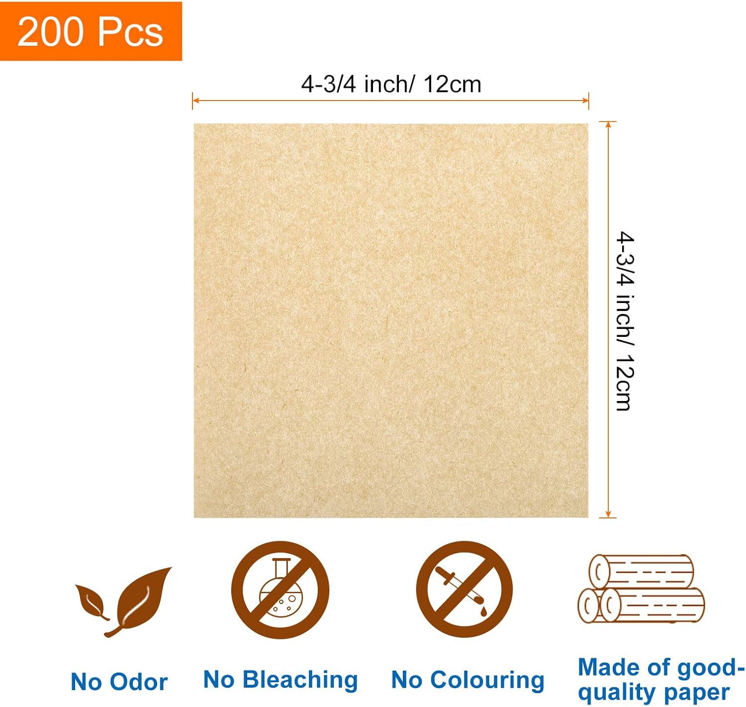 uxcell 200Pcs Air Fryer Parchment Paper, 4-3/4 Inch Square Air Fryer Liner, Non-Stick Steamer Liners for Oven, Microwave, Steaming Basket, Brown