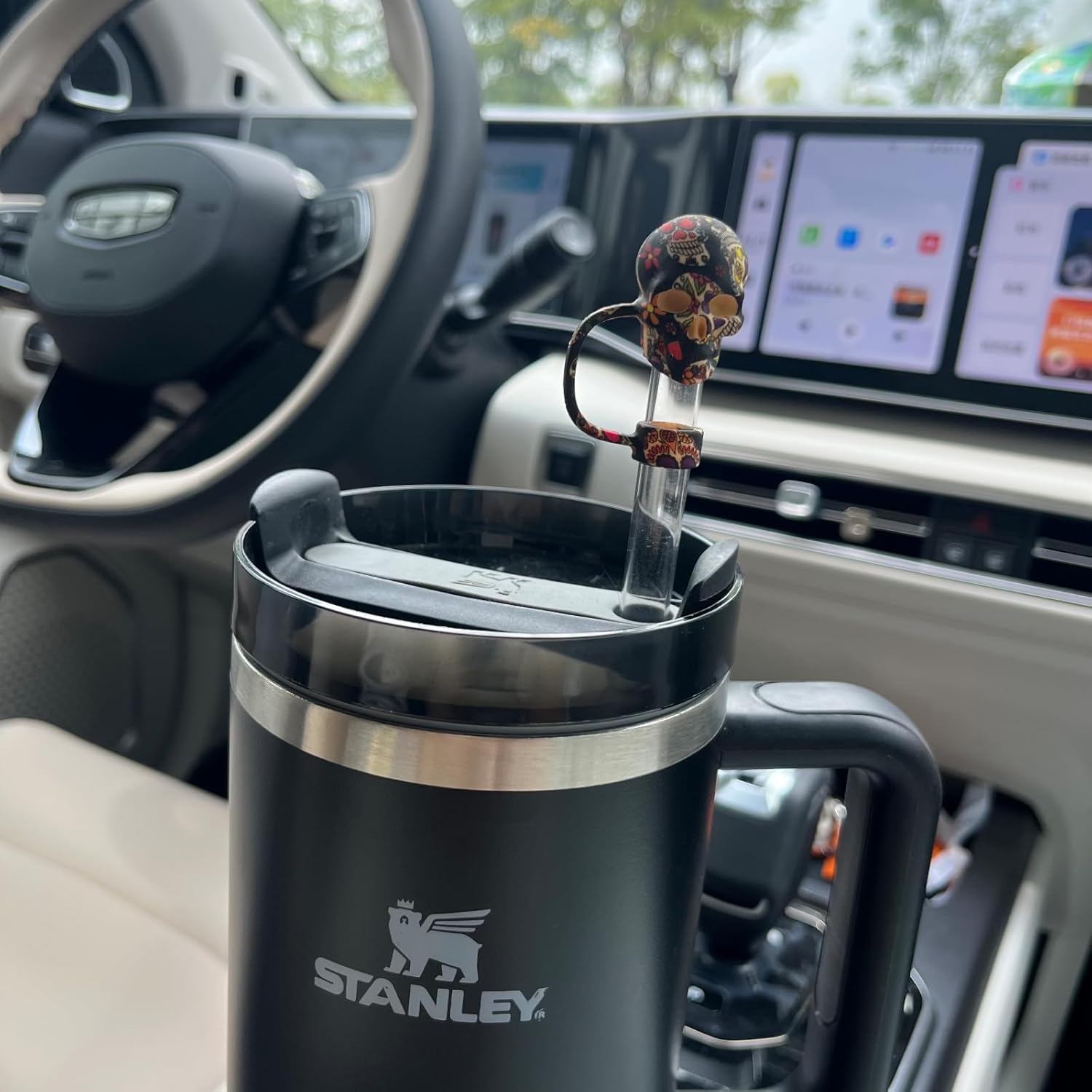 Skull Straw Cover Caps for Halloween Stanley Cup - 3 Pcs Silicone Straw Toppers Cool 10mm Straws Accessories Day of the Dead Gift for Boys