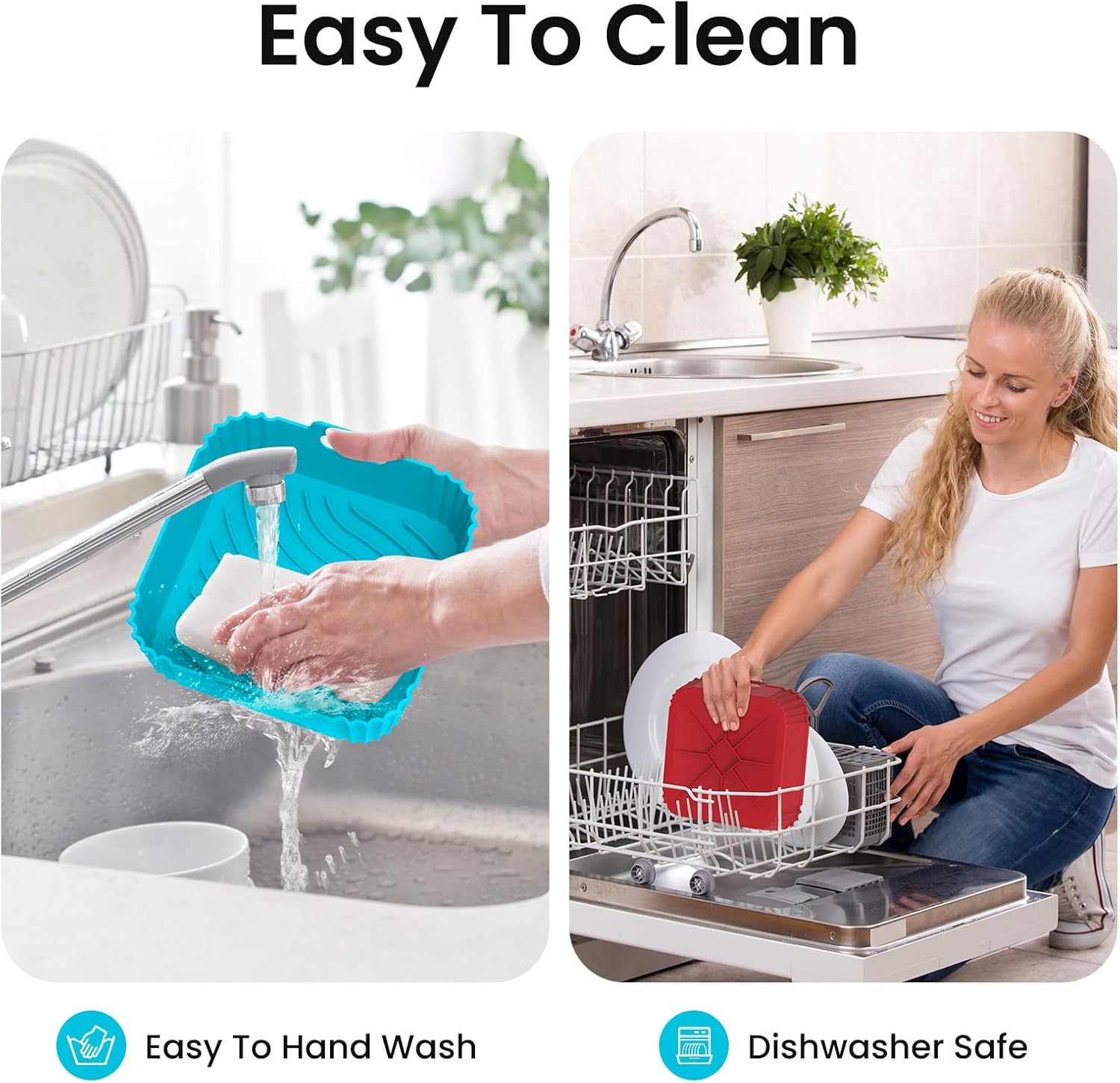 Redfly Air Fryer Silicone Liners, 9.3 Inch Square Airfryer Liners, Silicone Air Fryer Liners Reusable for 6-8 QT, Air Fryer Accessories Replacement for Parchment, Airfryer Liners Silicone Red&Blue