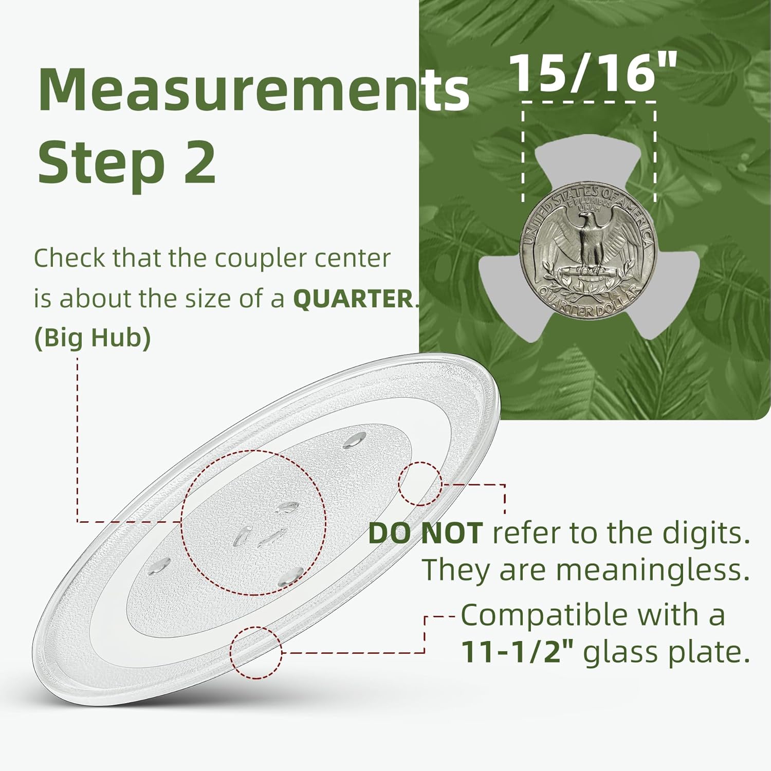 - This 11.5 IN Microwave Glass Turntable has a one-quarter sized big coupler hole in the center. (The center spot of turntable coupler measures 15/16" in diameter)