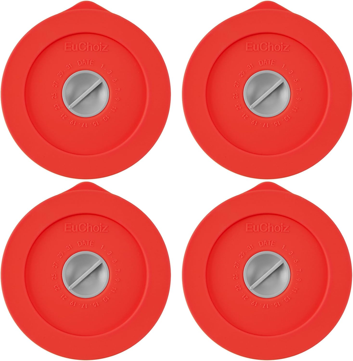 Replacement Lids for Pyrex 7202-PC 1 Cup, Silicone Round Storage Cover Lid for Anchor Hocking Glass Bowl 4 Pack with Date Mark Red