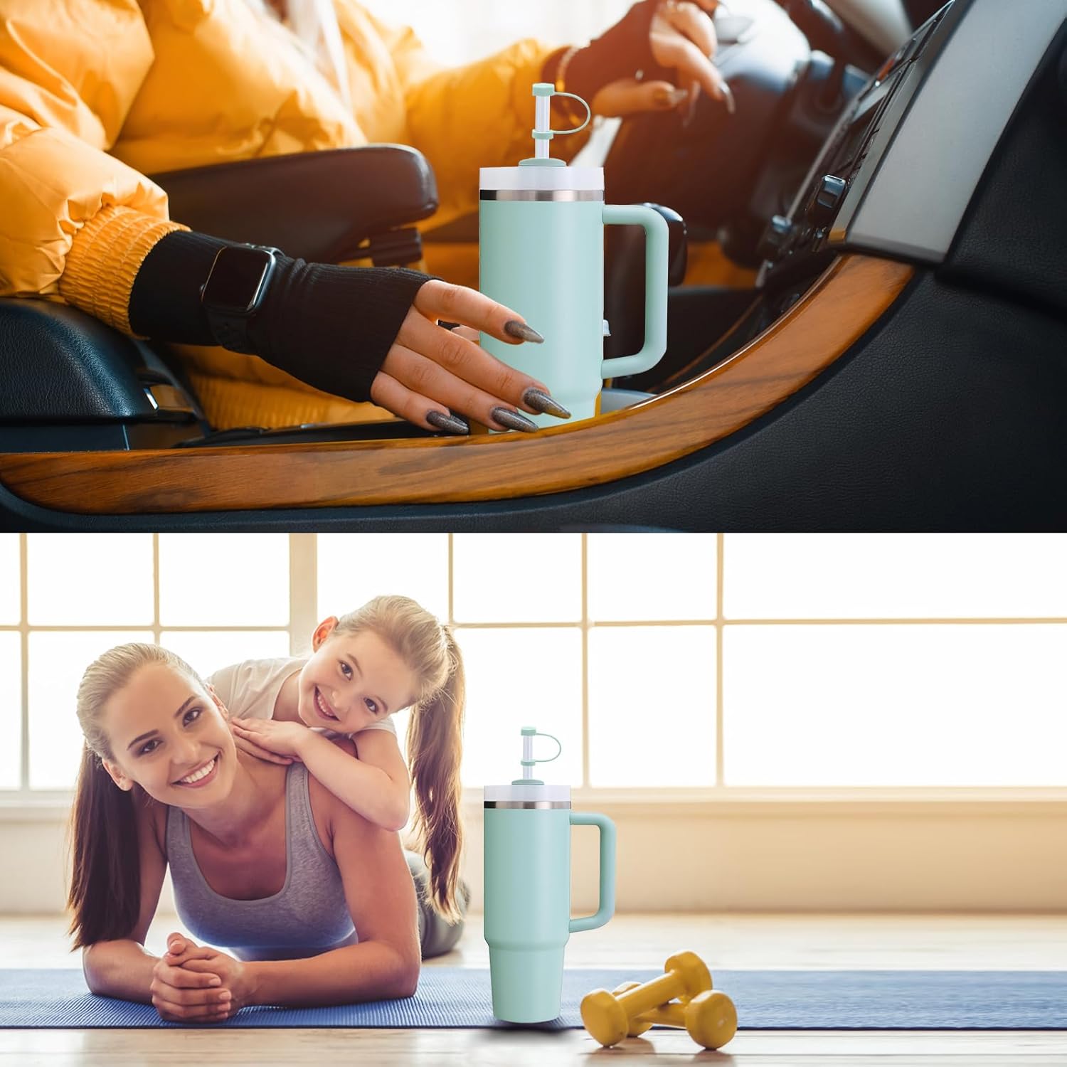 Silicone Spill Stopper Set Compatible with Stanley Cup 2.0 30oz & 40oz with Straw Cover (Set of 2, Seafoam)