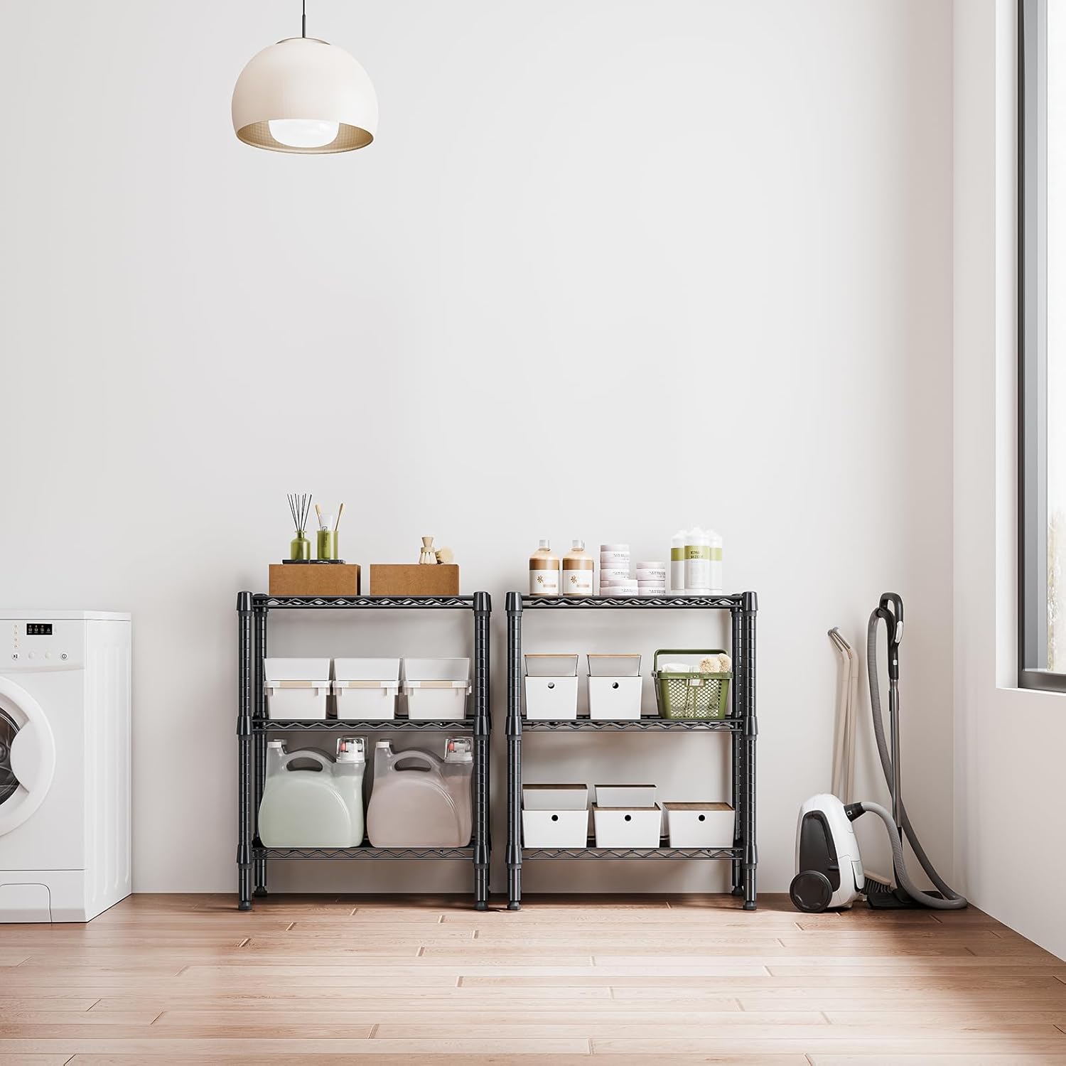 - VERSATILE DESIGN: The shelving units offer incredible versatility. It is suitable for use in a garage, balcony, pantry, and kitchen. Its special coating ensures water resistance, making it accommodated for humid environments like bathrooms