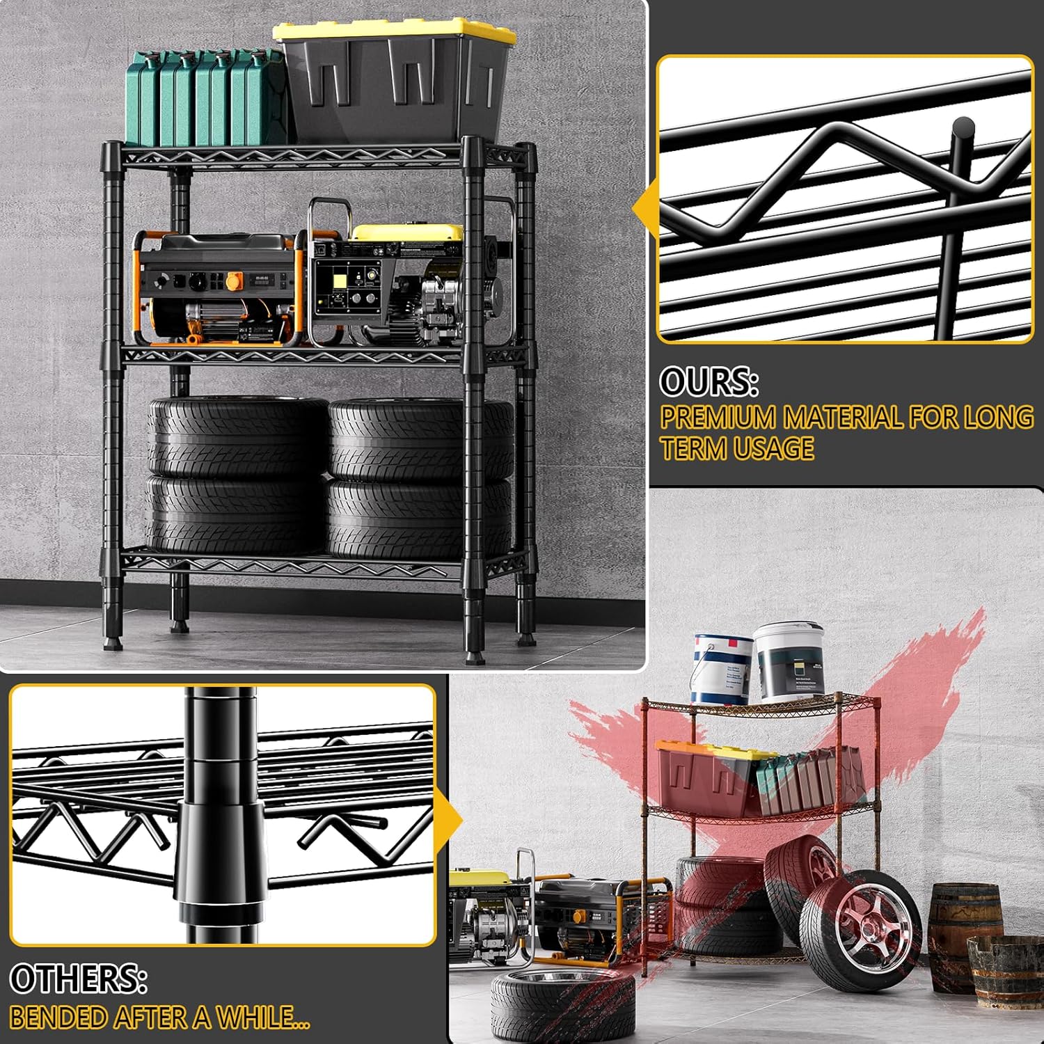 - PREMIUM QUALITY MATERIALS: Crafted from high-quality carbon steel. This series of storage shelves has 19.1mm pipes, which greatly improves its load-bearing capacity, and ensures its stability and durability. Each shelf holds up to 250 LBs