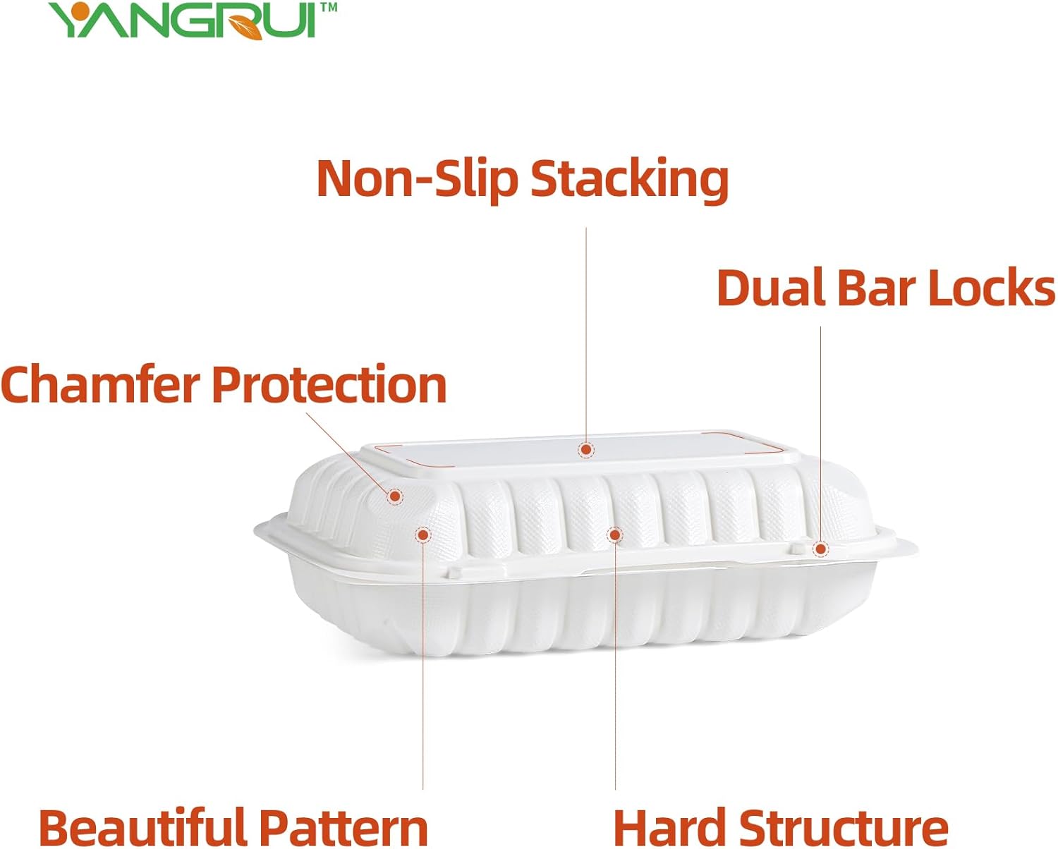 - →EASY SWITCH: YANGRUI clamshell food containers for holds hot and cold food, snacks, burgers, fries, fruit salad and more. You can have a great meal without washing the dishes. YANGRUI disposable meal prep containers are easy to lift and cover, with smooth edges that don't hurt your hands