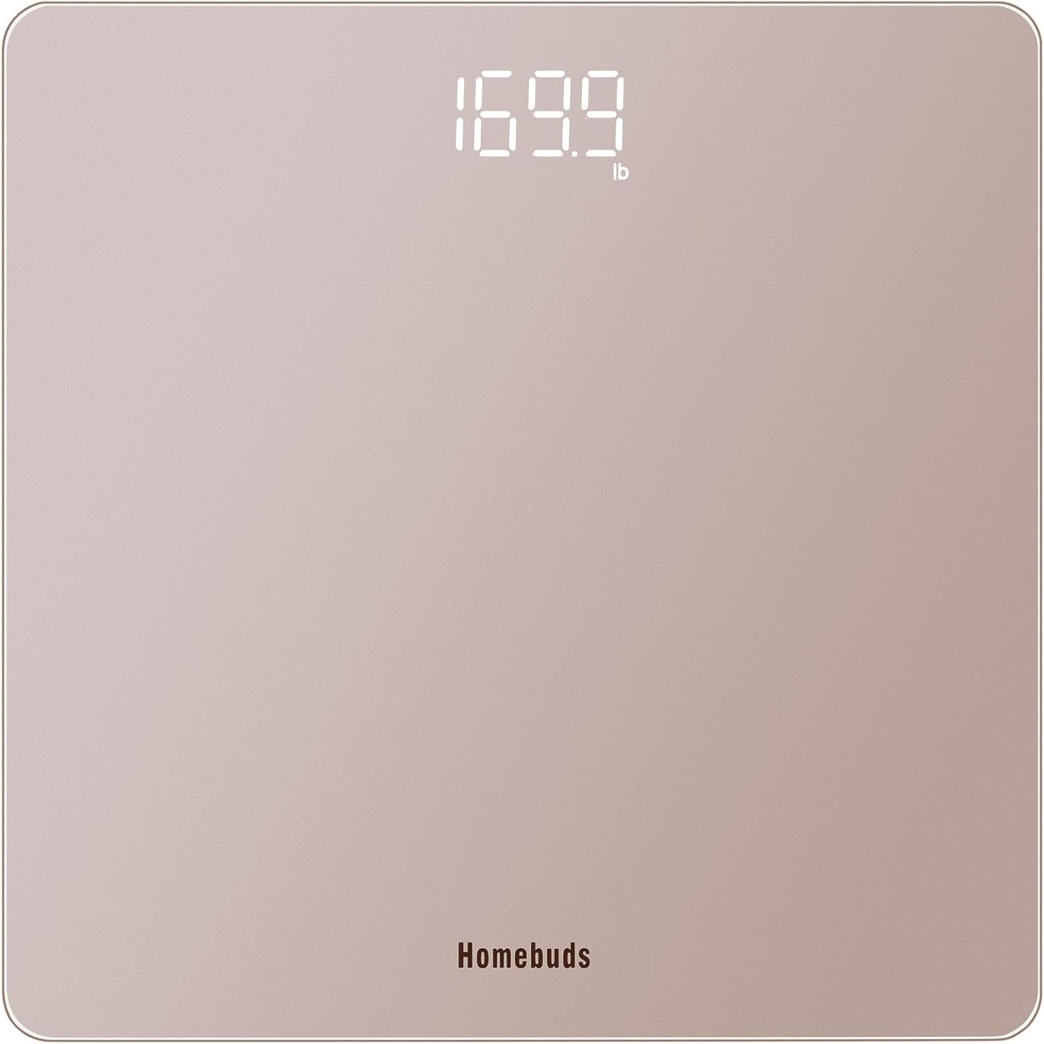 Homebuds Digital Bathroom Scale for Body Weight, High Precision Assured by Weight Scale Professional Factory Since 2001, Bright White LED and Step-On, 3*AAA Batteries Included, 400lb/182kg, Rose Gold