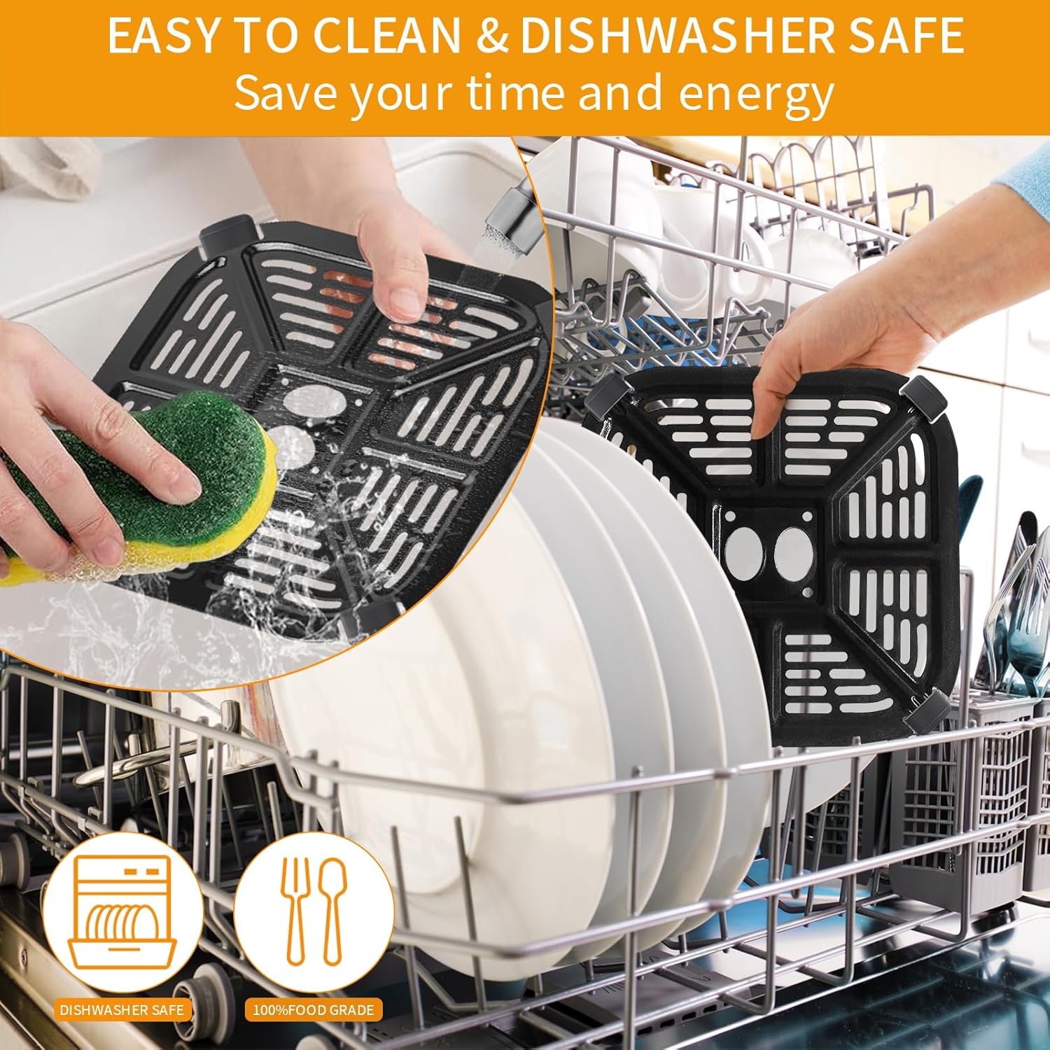 - 【Dishwasher Safe】: The surface of the air fryer accessory has a Teflon non-stick coating, making it easy to clean in the dishwasher and solving tedious cleaning problems. Please do not use rough abrasive cloths or metal balls, as they can damage the anti-stick coating.