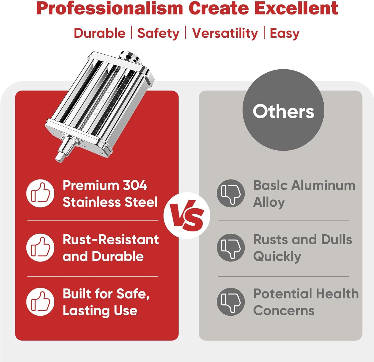 - Constructed from high-quality alloy and stainless steel, the pasta maker attachment for KitchenAid mixers is designed for durability, outperforming inferior plastic alternatives. This reliable tool delivers long-term performance, ensuring consistently exceptional results during pasta preparation.