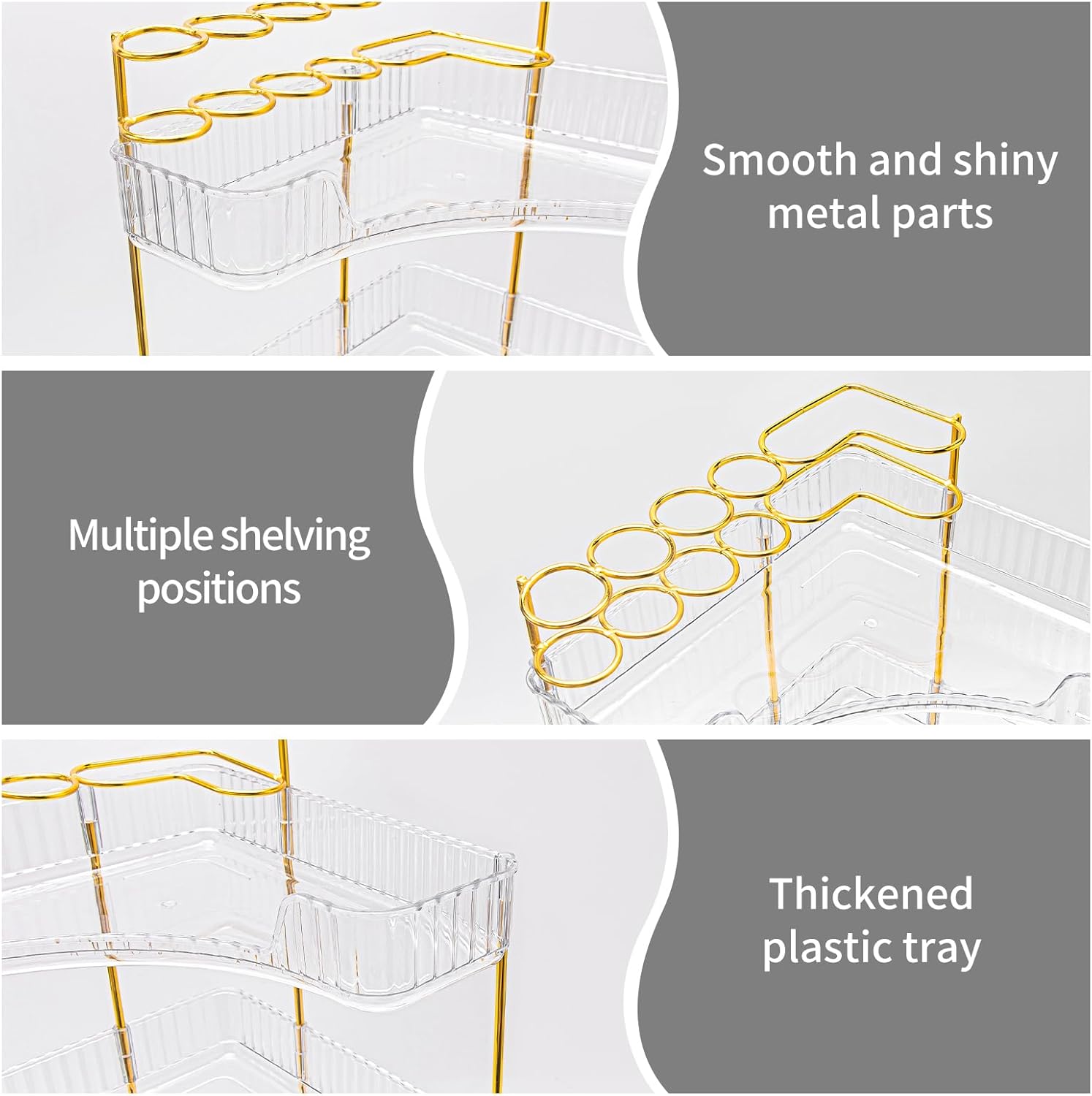 - Upgraded Design with Brush Holder: New 90° corner shelf organizer a stainless steel grid top layer to store beauty sponges, makeup brushes & toothbrushes securely. Say goodbye to cluttered counters – now every item has its place