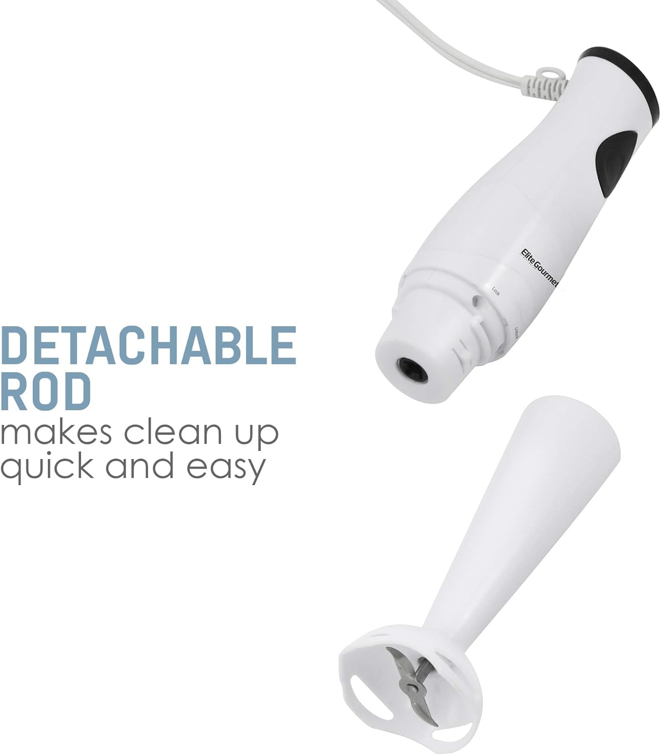 Elite Gourmet EHB2400W Electric Immersion Hand Blender, Mixer, Chopper, 1-Touch Control Multi Purpose Electric Immersion Stick, Mixer, Chopper, 150 Watts, For Soups, Sauces, Baby Food, White