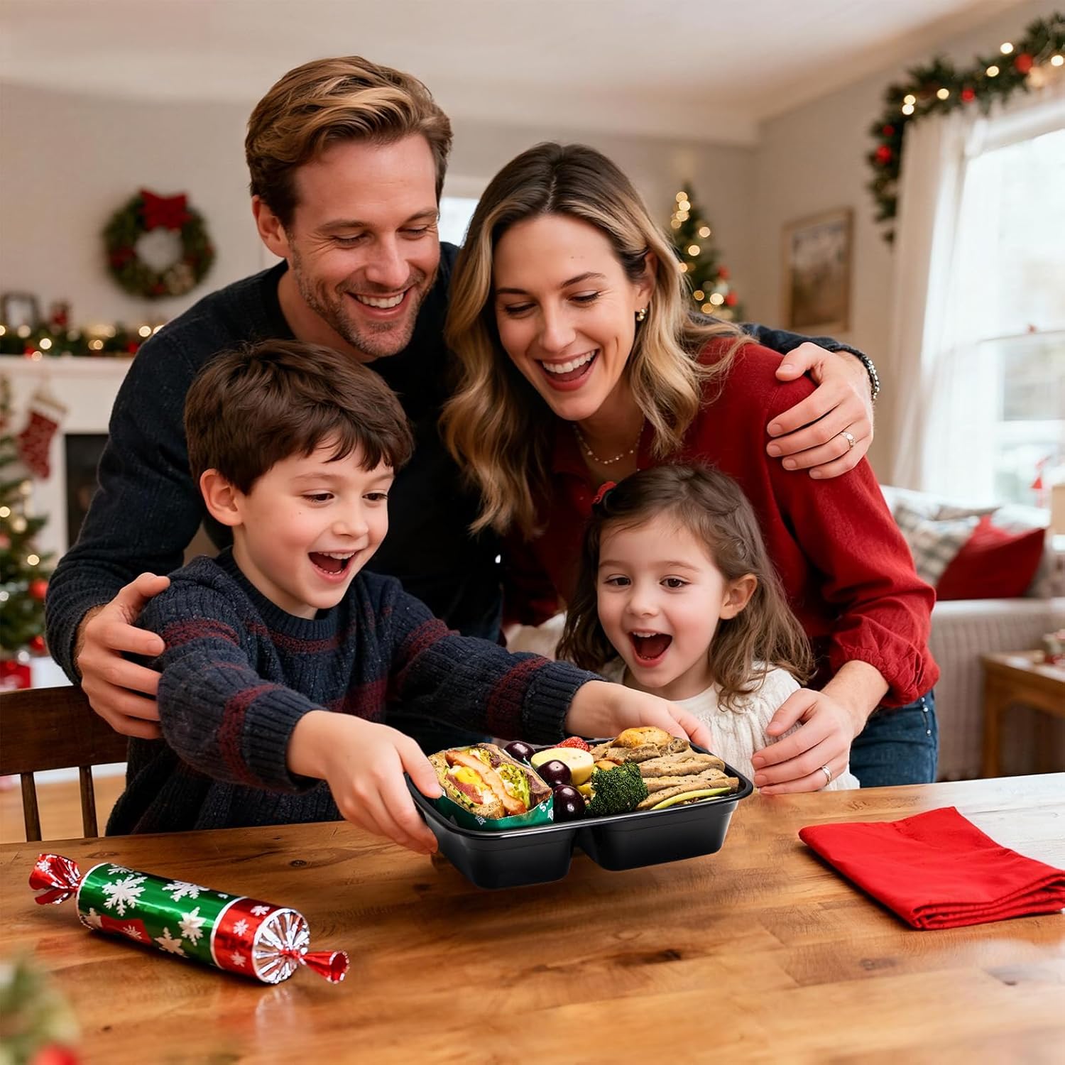 - Convenient MEAL PREP CONTAINER for your lunch, leftovers. Our leak-proof, airtight 2 compartment meal prep containers with lids keep your food fresh and make meal prep a breeze, with our quick, easy open lids and quicker reheat times when compared to other bulk lunch box containers. Great for work, travel, st patricks day party, or restaurant takeout. These plastic containers with lids for food use each compartment to separate your main course from entrees in reasonable portions.