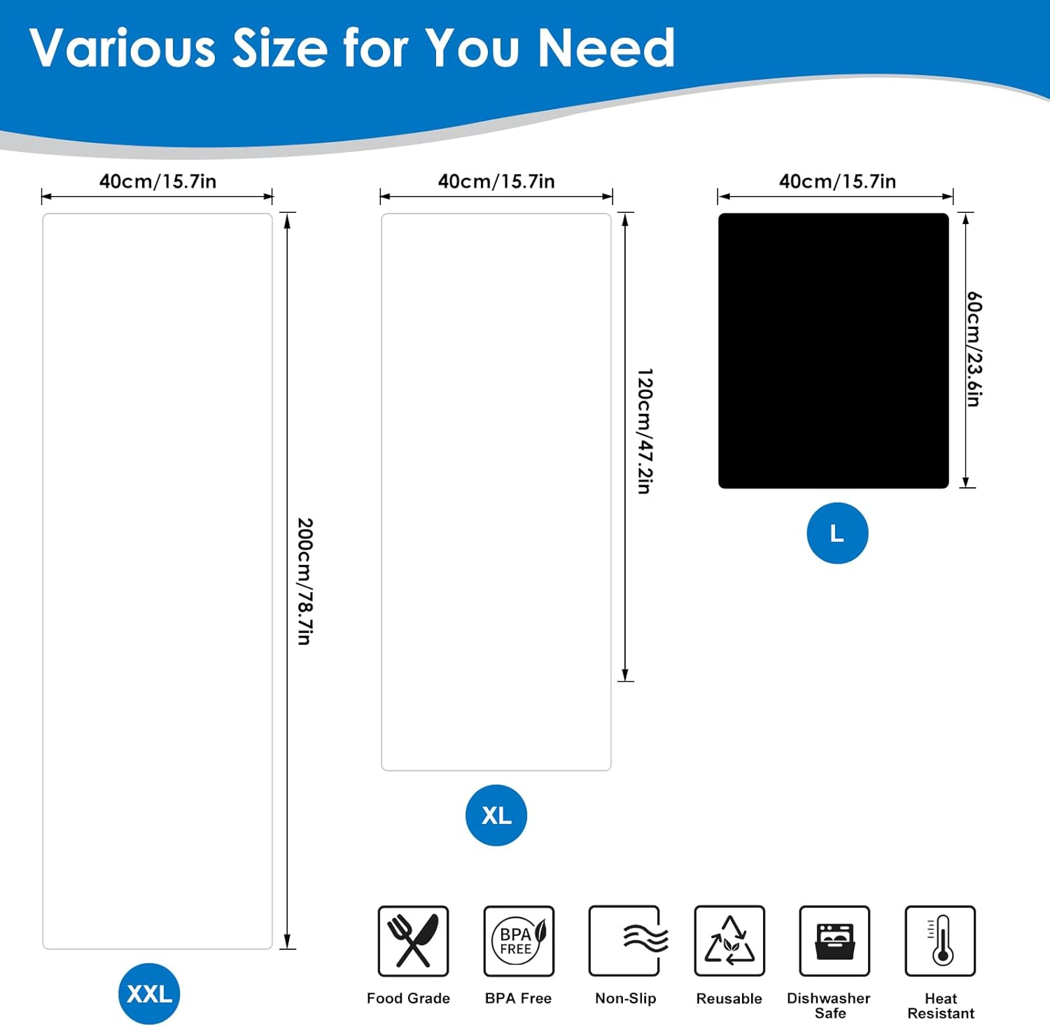 Extra Large Silicone Mats for Kitchen Counter, Heat-Resistant Pad for Air Fryer, Nonstick Waterproof Placemat (Transparent, 16" W x 78" L)