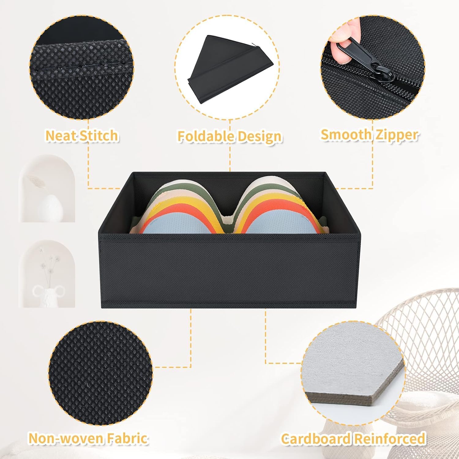 - [Perfectly matching your drawers] : This clothes organizer set includes 6 storage bins in various sizes to fit all your needs: 2 large (11.8*11.8*3.54"), 2 medium (11.8*5.9*3.54"), and 2 small (5.9*5.9*3.54"). Great for organizing clothes, sock, underwear, bra, baby clothing, scarves, shirt, pants, belt, ties, bikini and more
