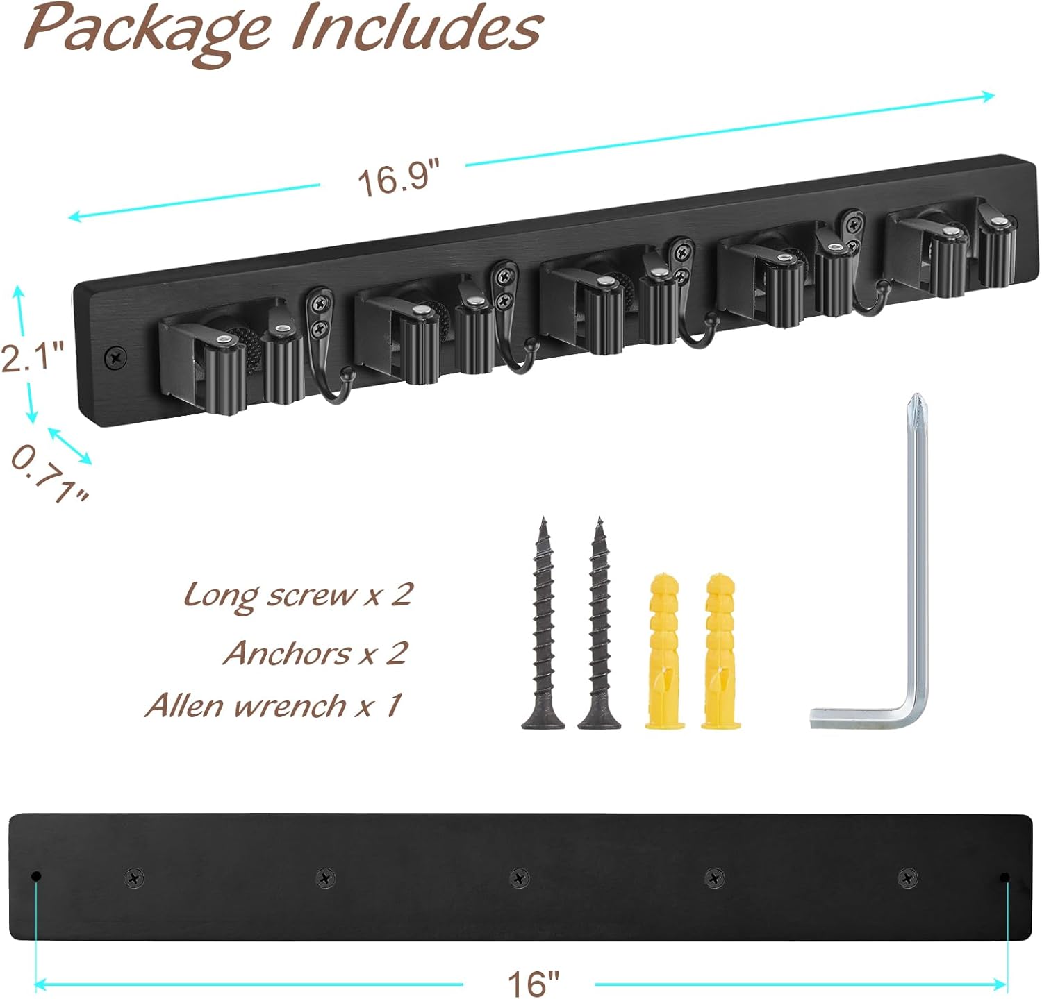 - EASY TO HANG AND USE - Each broom organizer wall mount has 5 rubber roller clips and 4 hooks. These clips do not require a lot of force to hold tools of various sized handled tools securely, no need to worry about falling off during use.