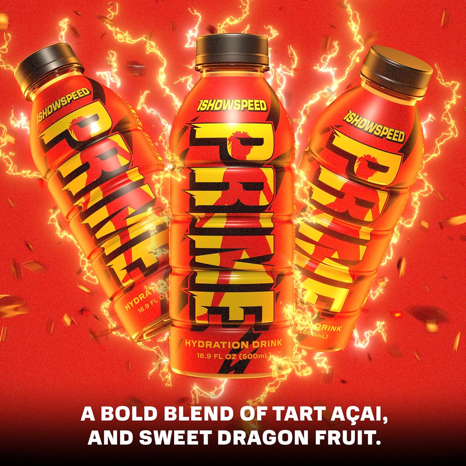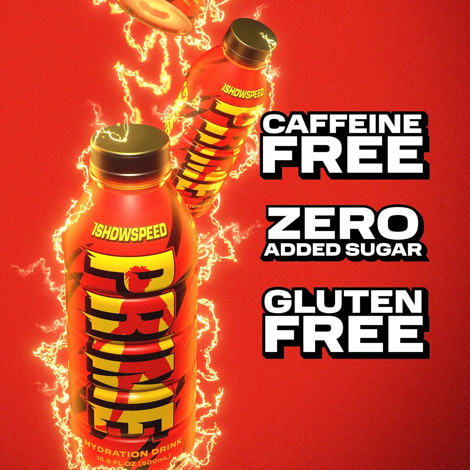 PRIME Hydration ISHOWSPEED, Sports Drinks, Electrolyte Enhanced for Ultimate Hydration, 250mg BCAAs, B Vitamins, Antioxidants, Low Sugar, 16.9 Fl Oz, 12 Pack