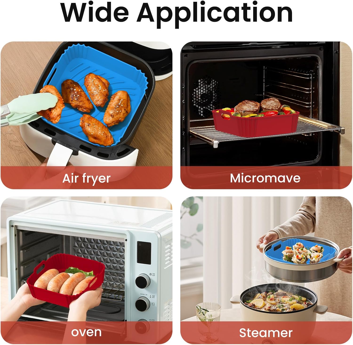 - Replacement Parchment: The square air fryer liners silicone with multiple uses are a smarter, more economical and safer option than disposable paper liners, a perfect replacement for flammable parchment paper liners, effectively avoiding fire hazards. This air fryer pans with handle is more convenient to place and remove than parchment paper liners, making air fryer sheets liners easy to use and a perfect choice of small air fryer liners, you can save money with the silicone for air fryer basket