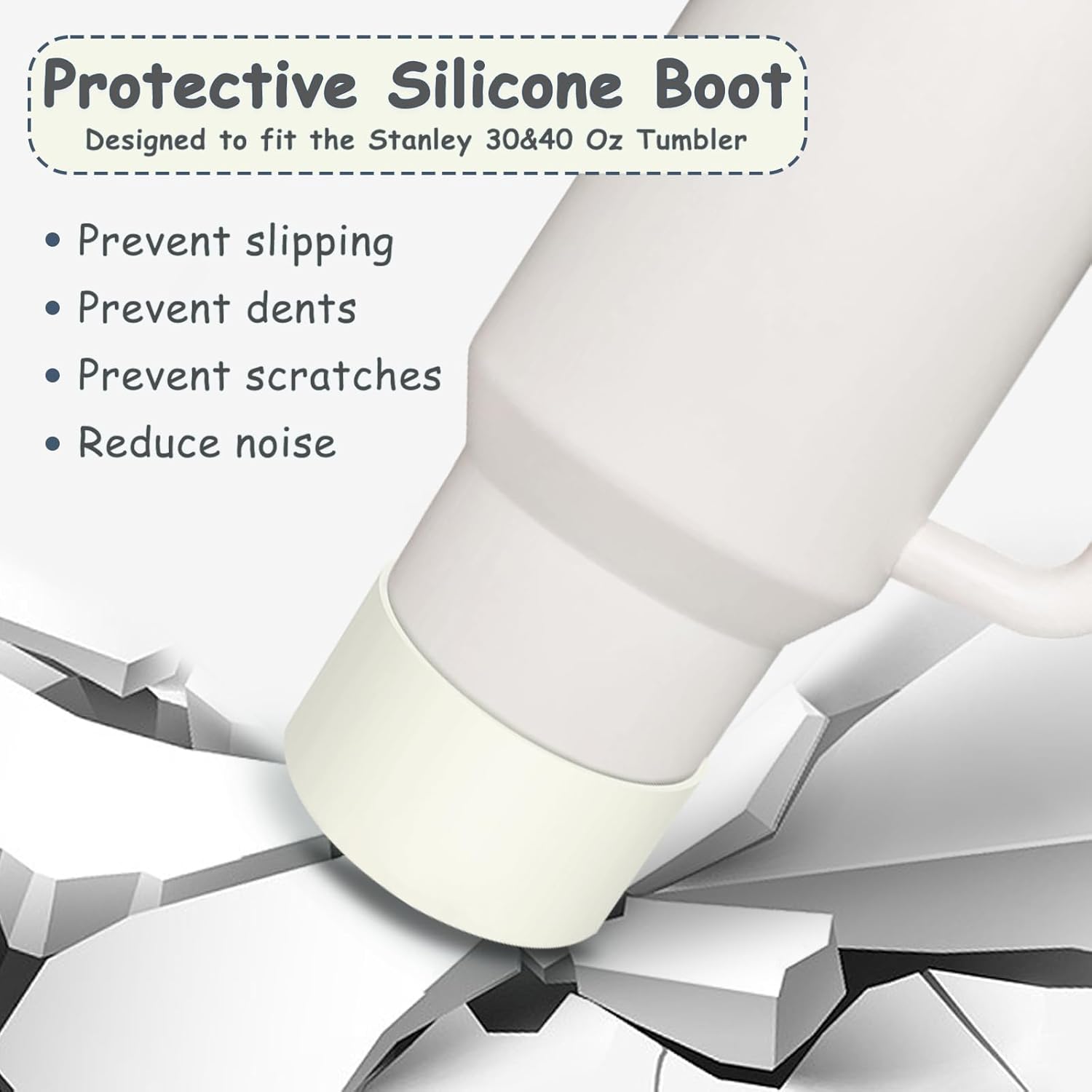 Stanley Cup Accessories Set,Including 2 Pcs 0.4in Straw Cover, 1 Silicone Spill-Proof Stopper Set of 3, 1 Cute Flower Handle Charm, 1 Silicone Boot Fits Stanley 40&30 Oz Tumbler (Cream)