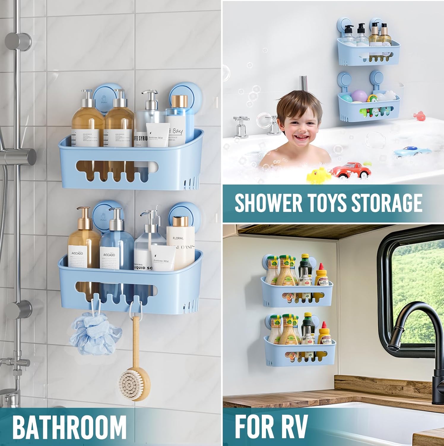 TAILI Shower Caddy Suction Cup 2 Pack, Heavy Duty Bathroom Organizer, Removable Shelves for Inside Shower, Shampoo, Waterproof Suction Plastic Storage for Bathroom Accessories Holder, Blue