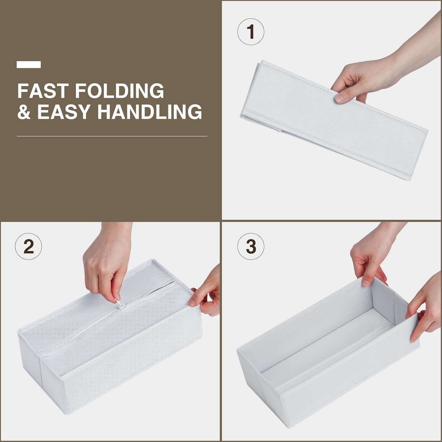 DIMJ Drawer Organizer Clothes, 6 Pack Fabric Drawer Organizer Bins, Foldable Baby Clothes Organizer & Dresser Organizer For Nursery, Clothes, Bedroom, Closet, Socks, Bra, Tie,White