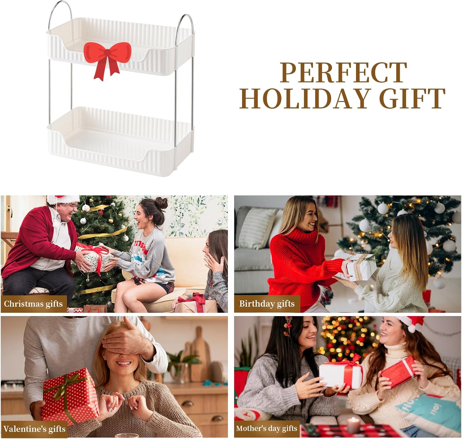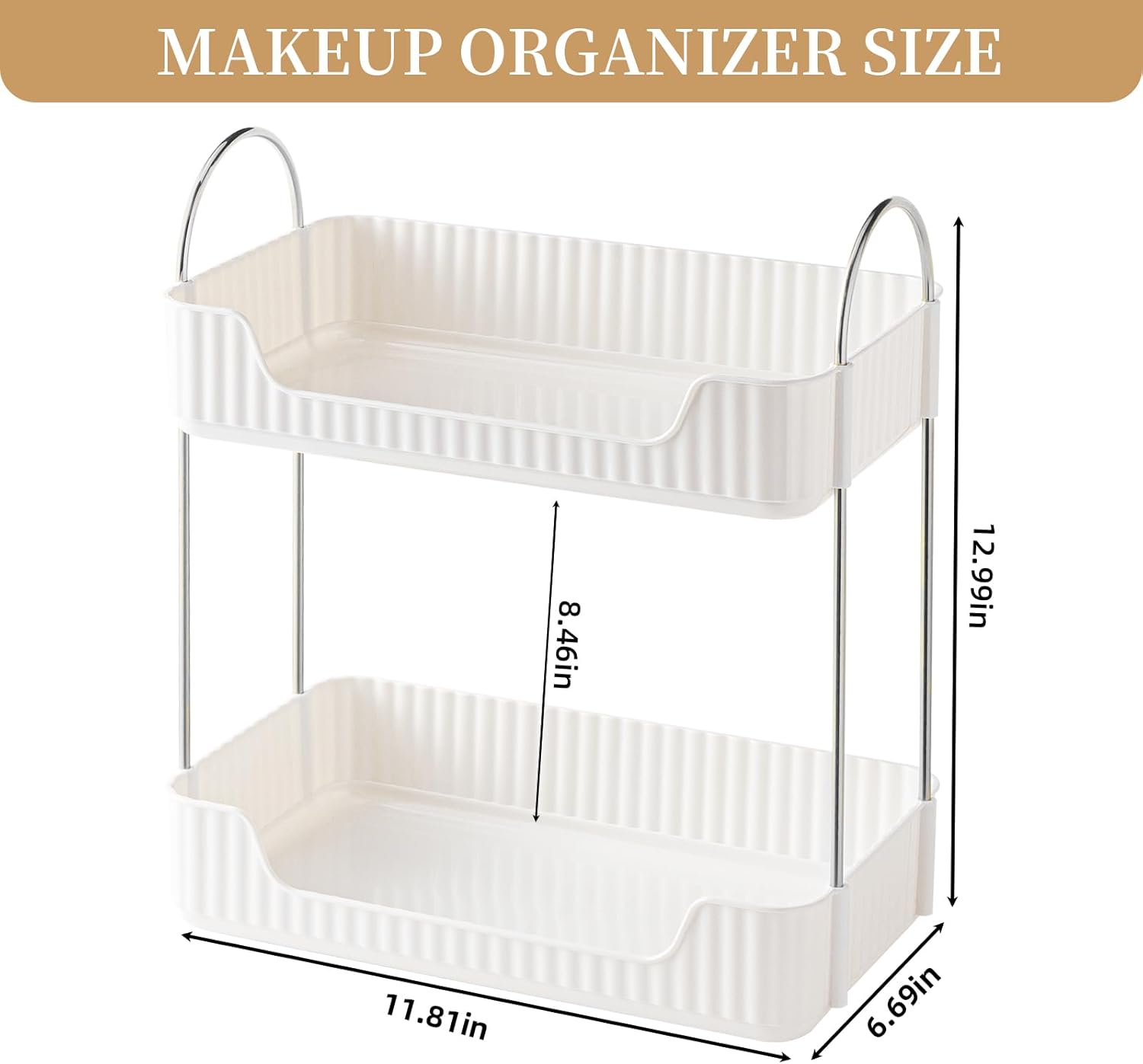 Bathroom Counter Organizer Countertop Storage, Cosmetics Skincare Shelf Organizer, Makeup Organizer Perfume for Dresser Vanity Tray, Spice Rack Organizer for Kitchen(2 Tier-Cream white)