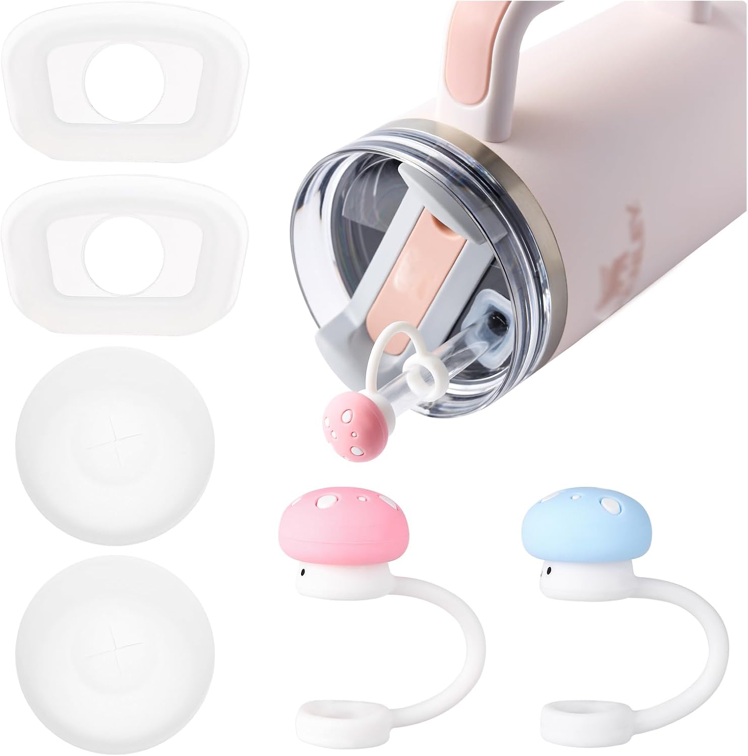 Spill Stopper Set Compatible with Stanley Cup 40oz 30oz, Cup Accessories Including Mushroom Straw Cover Cap and Leak Stopper set