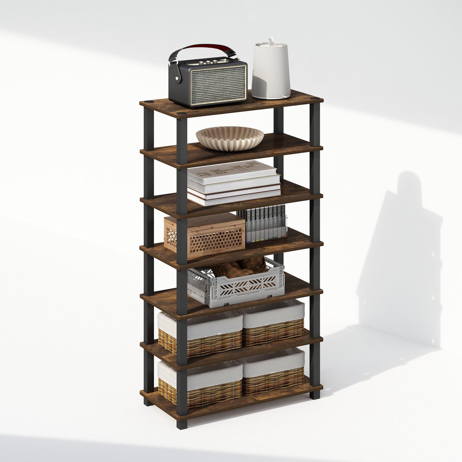 Furinno Turn-N-Tube Storage Shelves Set of 2, 4-Tier Stackable Standing Shelf, Open Corner Shelf, for Organization and Storage, Living Room, Garage, Home Office, Amber Pine