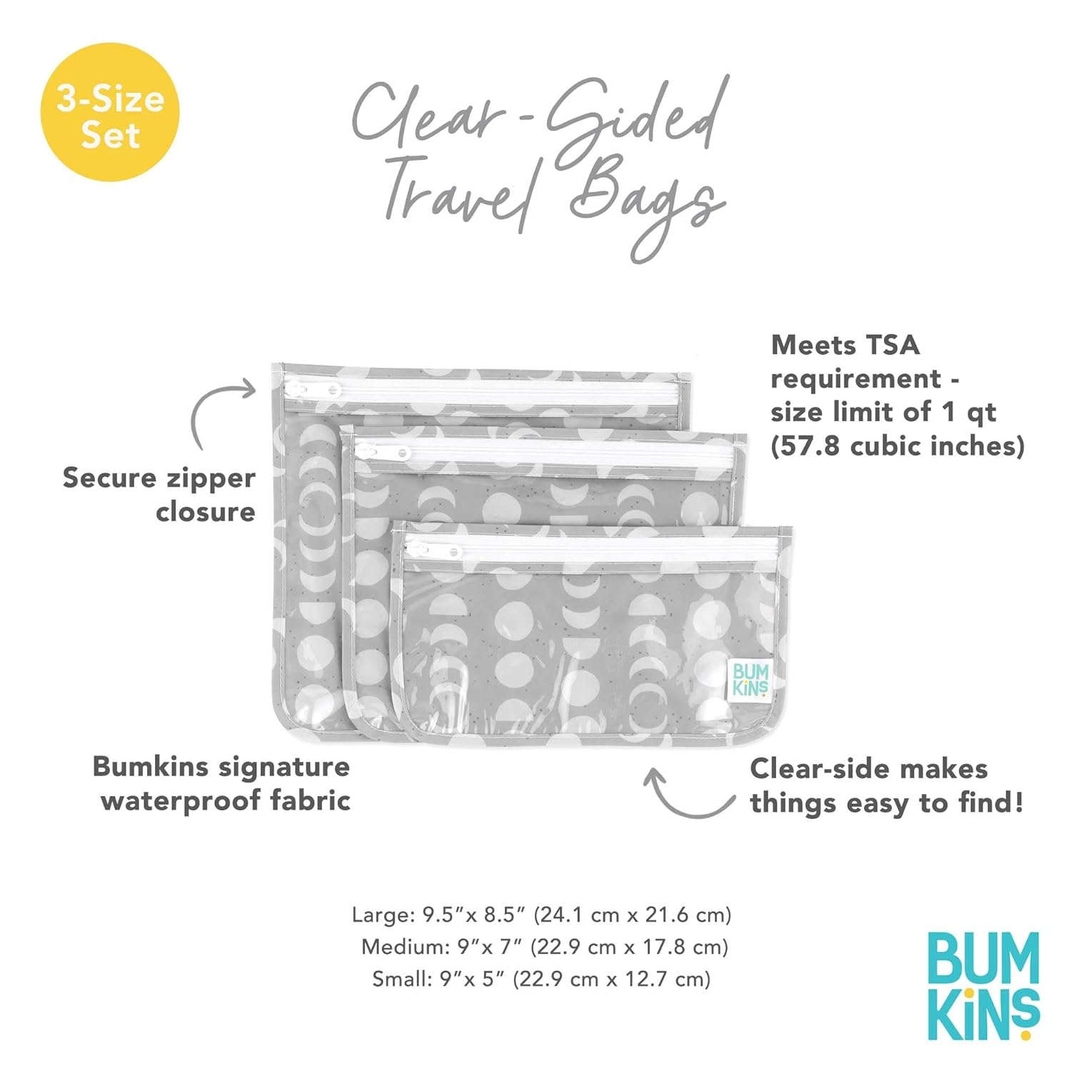 Bumkins Travel Bag, Toiletry, TSA Approved Packing Pouch, Zip Bag, Quart Size Airline Compliant, Clear-Sided, Set of 3 Sizes