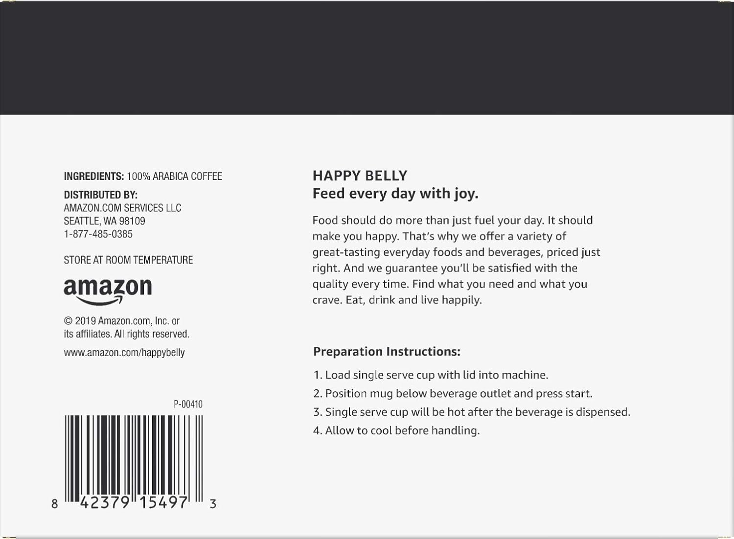 Amazon Brand - Happy Belly Dark Roast Coffee Pods, Compatible with Keurig 2.0 K-Cup Brewers, 100 Count (Pack of 2)