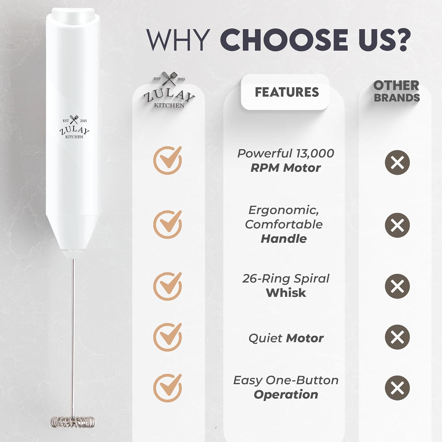 Zulay Kitchen Milk Frother Handheld with 2 Duracell AA Batteries – Electric Drink Mixer for Coffee, Lattes, Cappuccinos, Matcha & Hot Chocolate – Portable Foam Maker & Coffee Bar Accessory