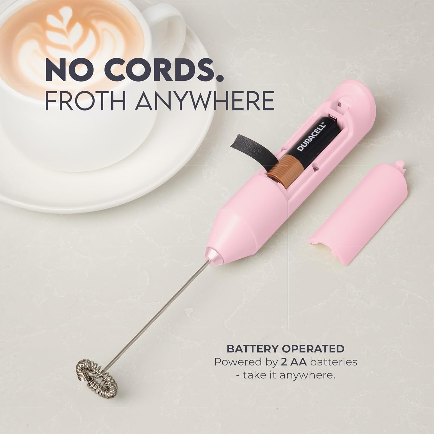 - Ready to Use: Includes 2 Duracell AA batteries so you can froth right out of the box.