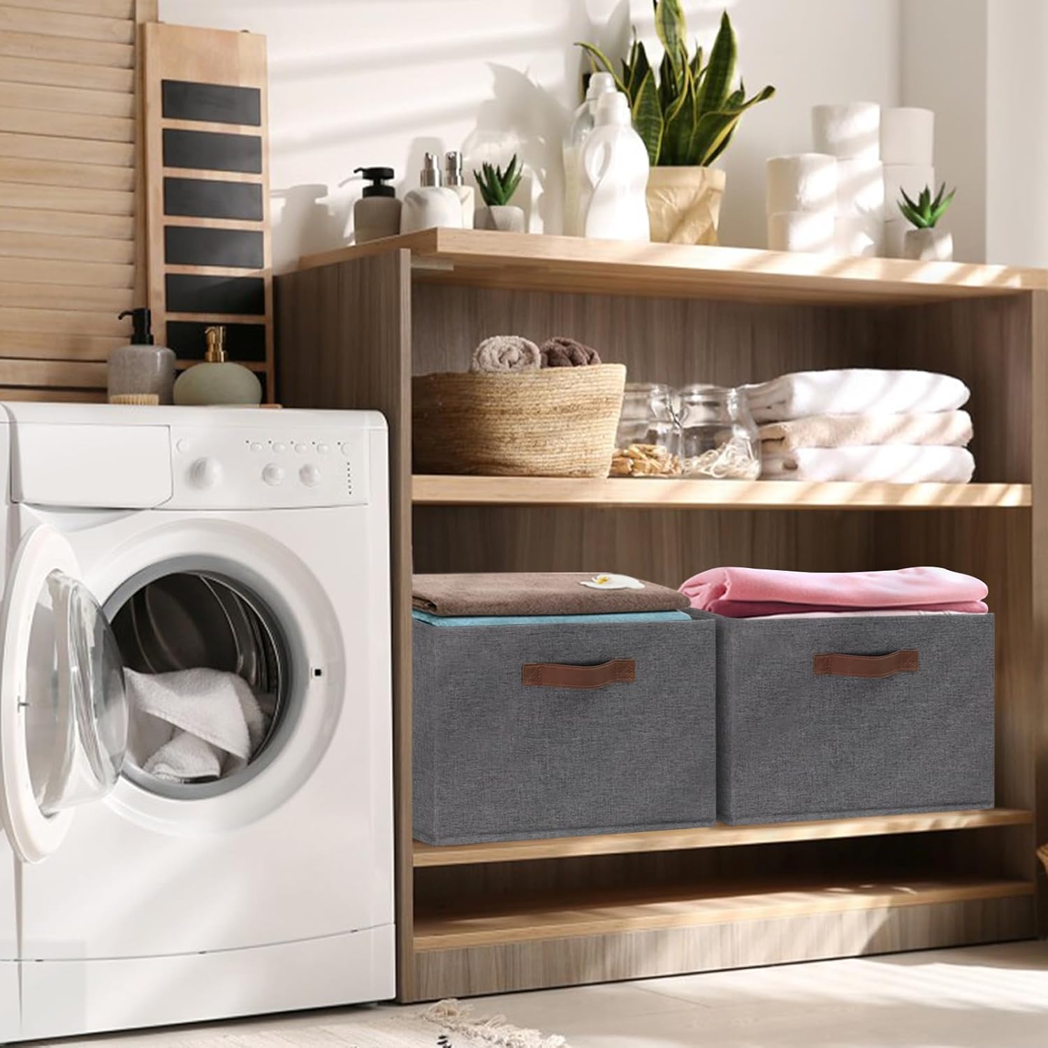 - 【LARGE CAPACITY】Our storage baskets for shelves are home essentials to save storage space and keep everything organized. Measuring 15” (L) x 11” (W) x 9.6” (H), large enough for organizing tons of clothes, shirts, sweaters, shoes, socks, underwear, towels, blanket, bed sheets, pet supplies, books, DVDs, office and craft supplies, etc