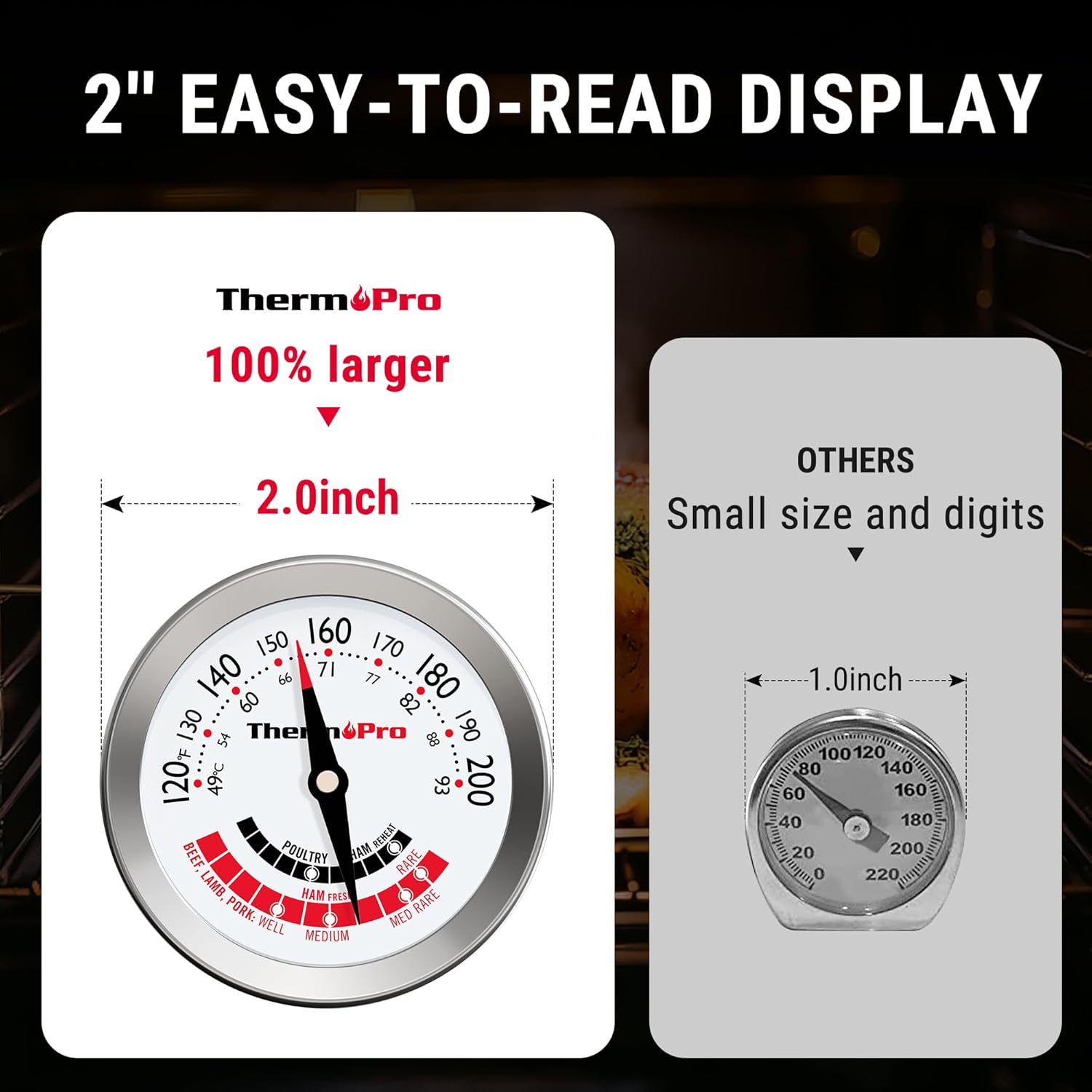 ThermoPro APT200 2 Pcs Meat Thermometer for Cooking with Extra-Large 2-Inch Dial, Analog Dial Food Cooking Thermometer with 5.1" Stainless Steel Probe for Poultry, Pork, Beef Candy Making Accessory