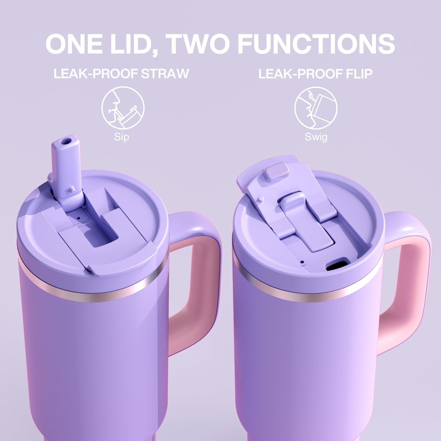 40 oz Tumbler with Handle and Straw: Stainless Steel Insulated Tumbler Keeps Cold for 24 Hours, Leakproof Travel Cup Fits in Cup Holder and BPA-Free, Mauve