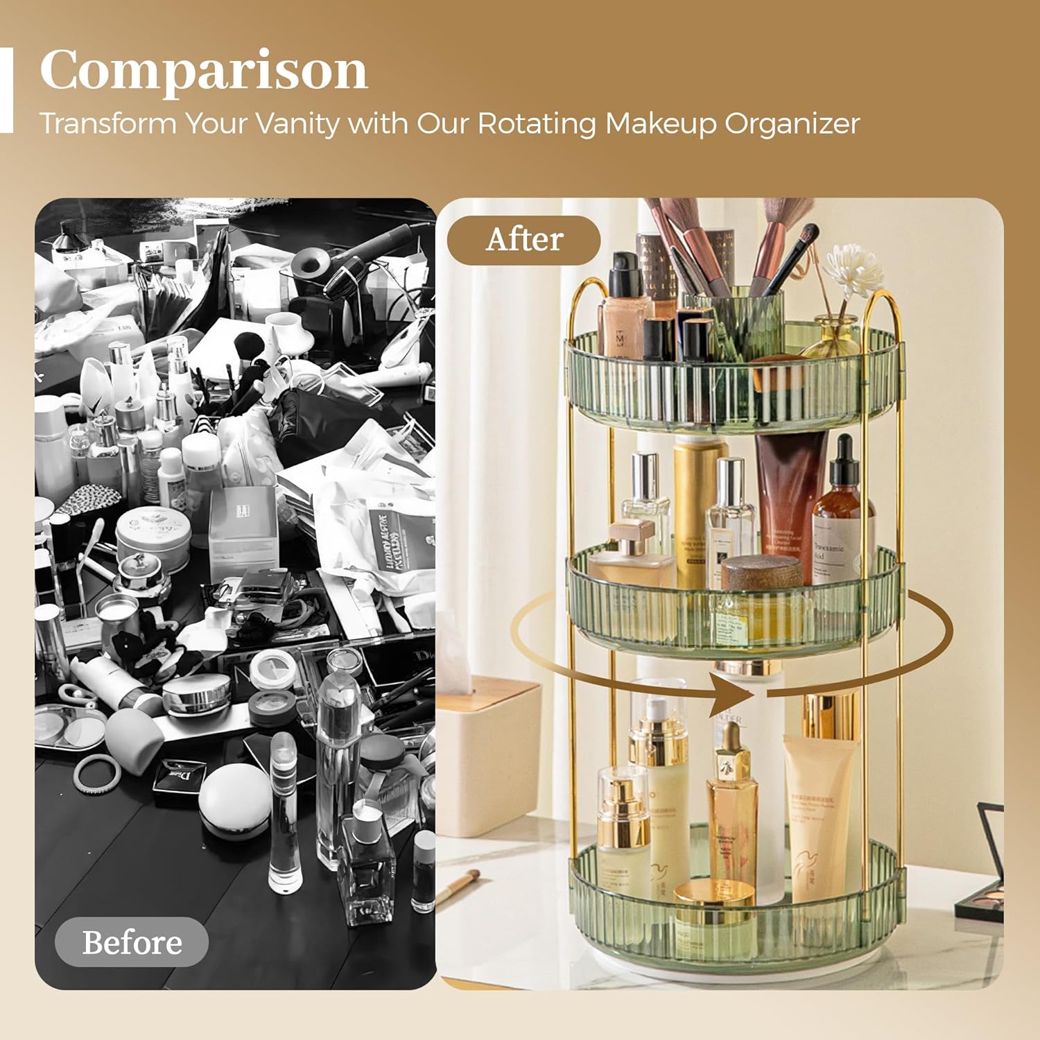- An Ideal Gift: This elegant spinning cosmetic organizer makes a thoughtful and practical present for the special women in your life—whether it’s your wife, girlfriend, daughter, or granddaughter. Ideal for Christmas, New Year, Valentine’s Day, Mother’s Day, birthdays, anniversaries, or just because.