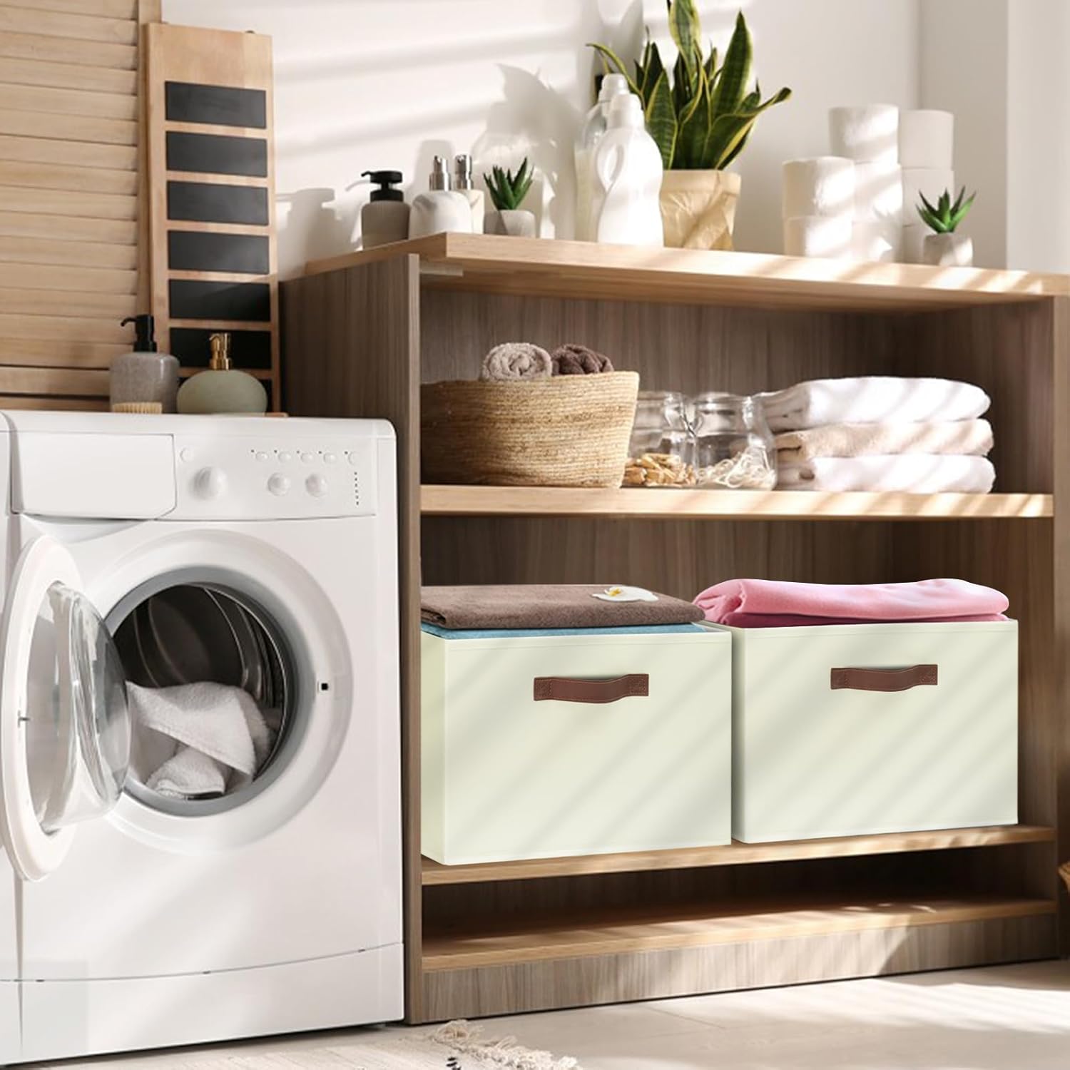- 【MULTI-PURPOSE】These storage bins for shelves could meet all your family storage needs, bring a sense of order and refinement and a touch of warmth to your living room, bedroom, bathroom, laundry room, office, college dorm, nursery and more. They can also be used as storage baskets for shelves, storage bins for shelves, closet storage bins, shelf bins, or under bed storage bins