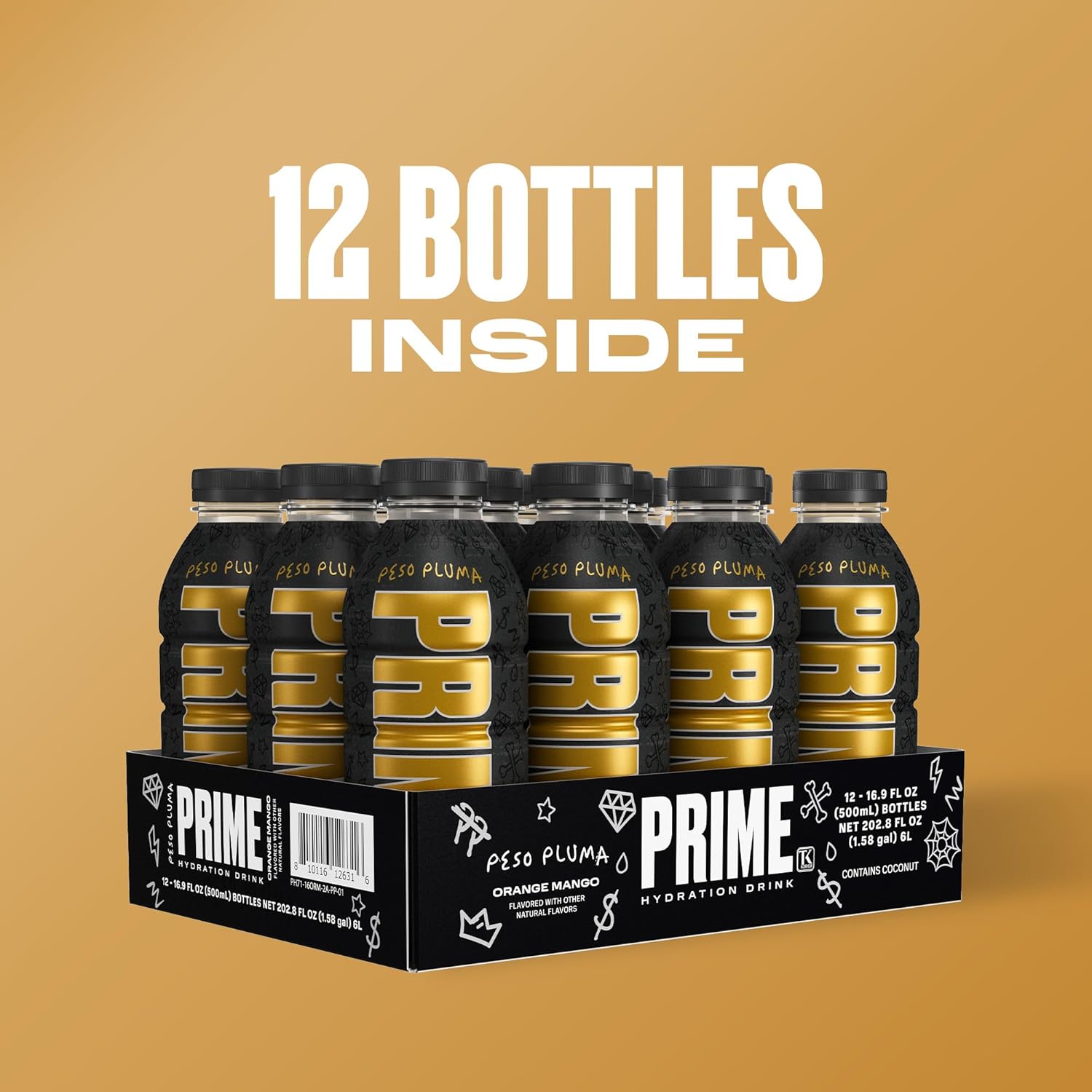 PRIME Hydration PESO PLUMA, Sports Drinks, Electrolyte Enhanced for Ultimate Hydration, 250mg BCAAs, B Vitamins, Antioxidants, Low Sugar, 16.9 Fl Oz, 12 Pack