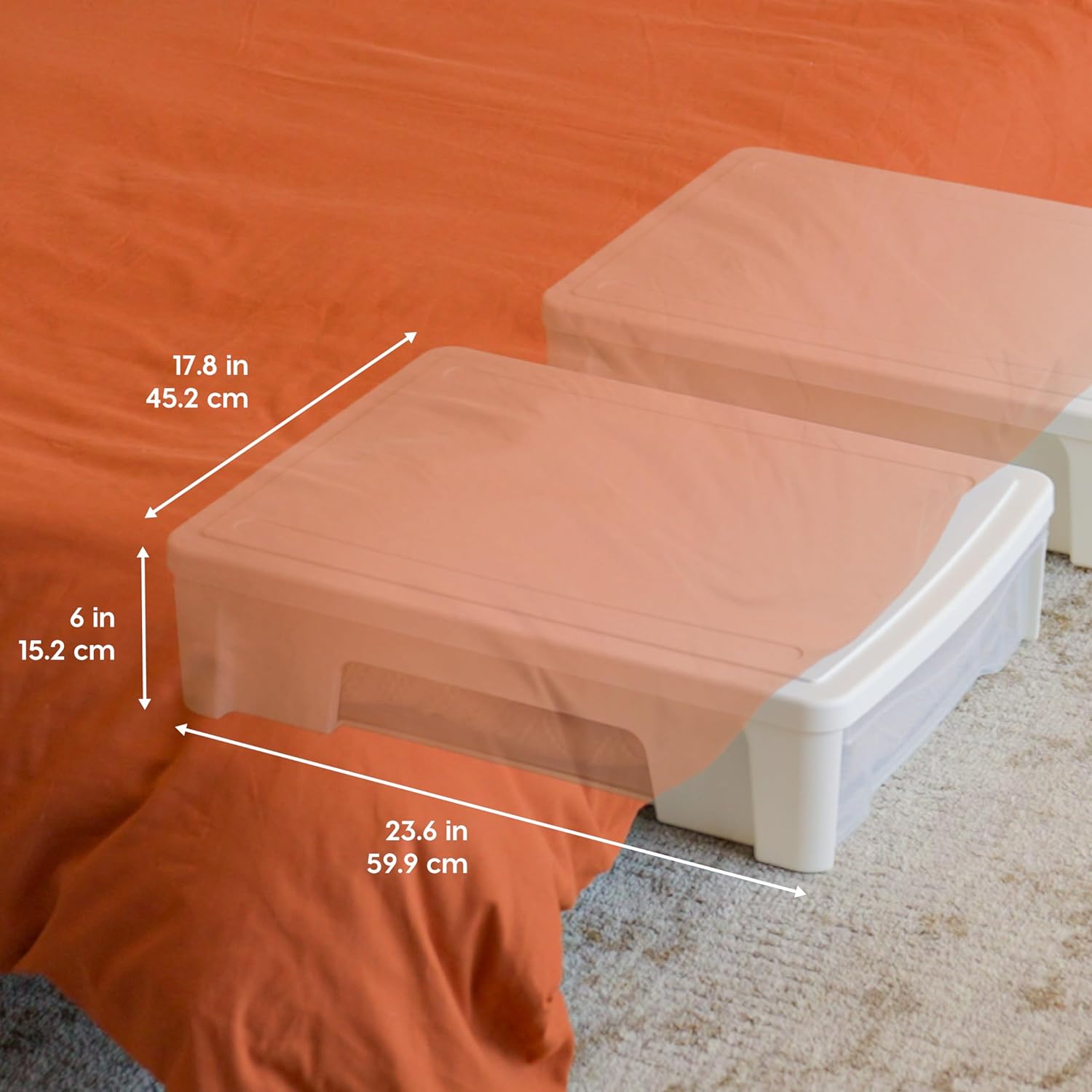 - DIMENSIONS: Outer - 23.75"L x 17.81"W x 6"H; Inner - 21"L x 14.6"W x 4.12"H. We recommend measuring the space under your bed to ensure a perfect fit.