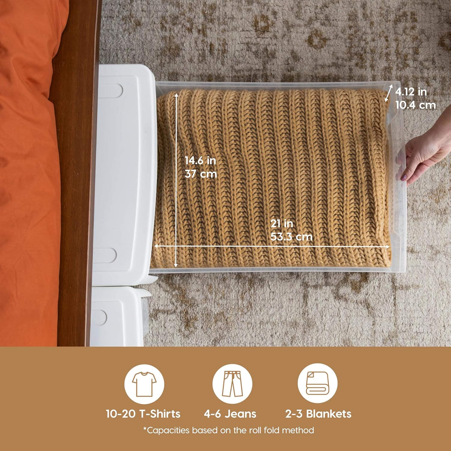 - SPACE / TIME SAVING: The under bed storage bin is designed to fit under most beds to easily slide in and out for easy access to stored items, simply using the smooth-glide drawer. No need to open a lid and put it back to under the bed every time. Secure lids will ensure that all your items remain dry and dust-free.