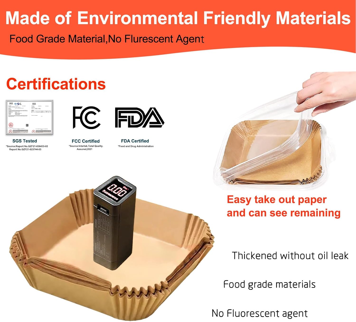 - Stronger & Oil proof : Our air fryer parchment liners is 42gsm, 12% thicker than the 35gsm of other airfryer liners to be durable and sturdy, and won’t tear when lifting even after cooking. Our air fryer paper is oil and water resistant, preventing food residue and grease from seeping into the air fryer basket, keeping the bottom and side clean and extending the life of the air fryer.