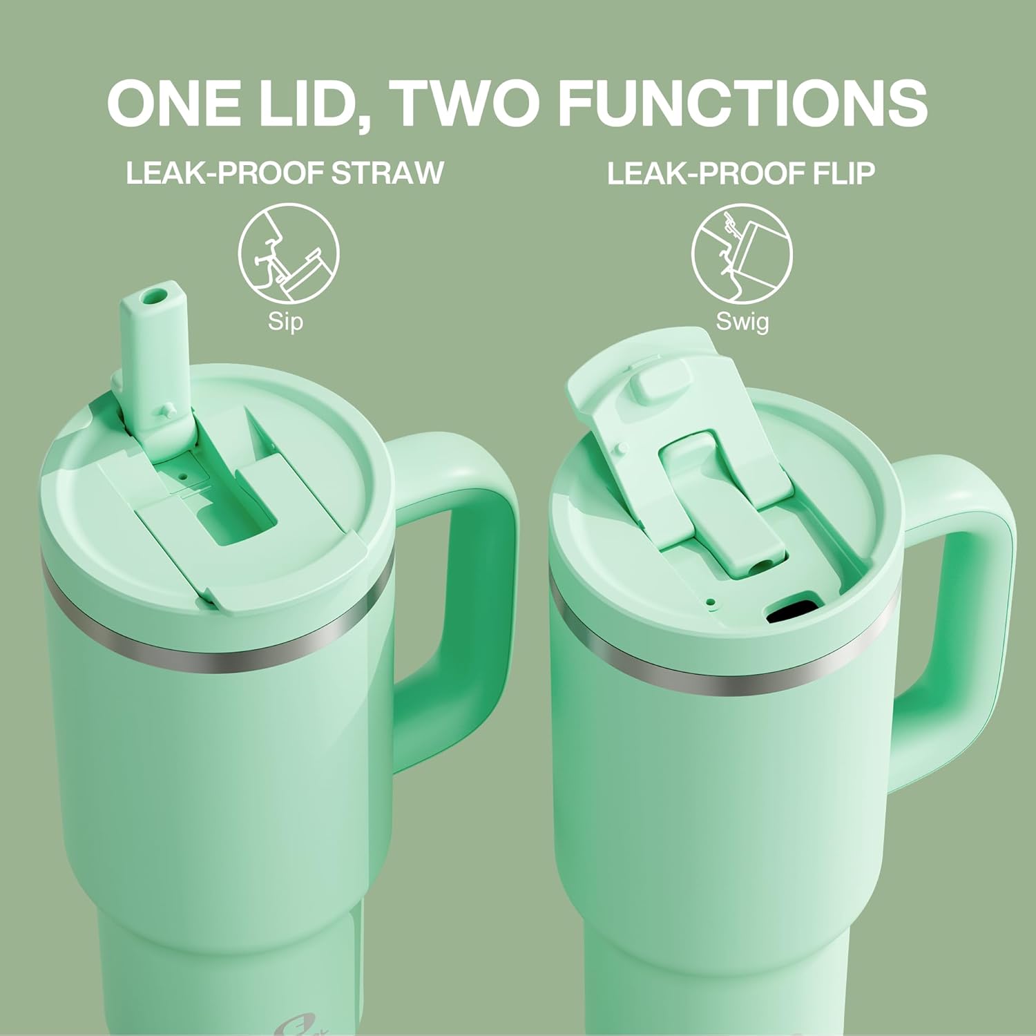 32 oz Tumbler with Handle and Straw: Stainless Steel Insulated Tumbler Keeps Cold for 24 Hours, Leakproof Travel Cup Fits in Cup Holder and BPA-Free,Brook Green