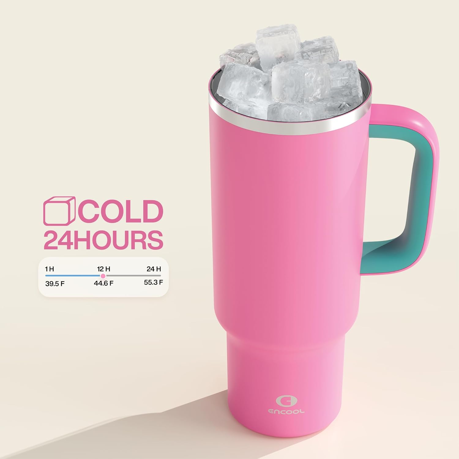 ENCOOL 40 oz Tumbler with Handle and Straw: Stainless Steel Insulated Tumbler Keeps Cold for 24 Hours, Leakproof Travel Cup Fits in Cup Holder and BPA-Free,Light Crimson