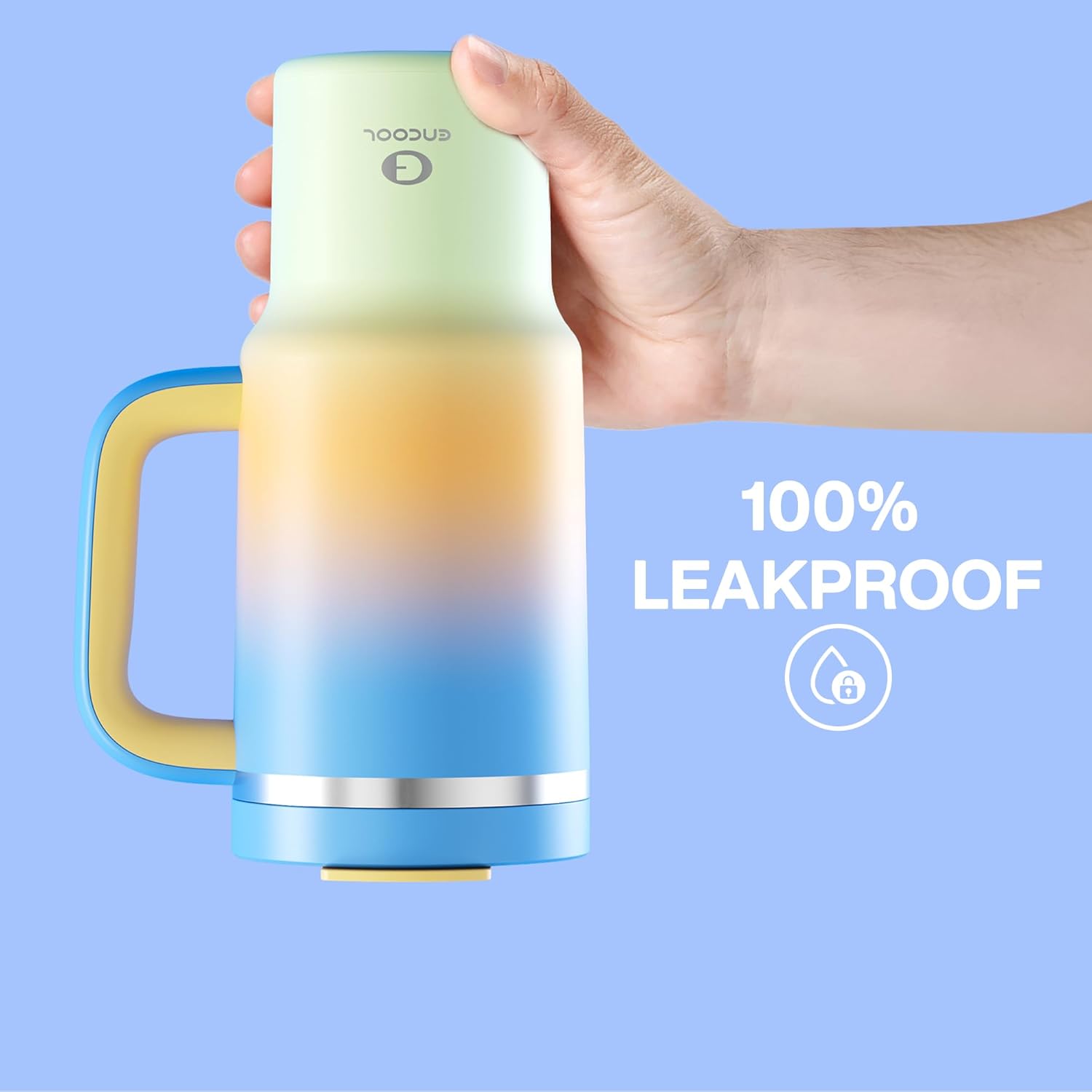 ENCOOL 32 oz Tumbler with Handle and Straw: Stainless Steel Insulated Tumbler Keeps Cold for 24 Hours, Leakproof Travel Cup Fits in Cup Holder and BPA-Free, Sunny Breeze