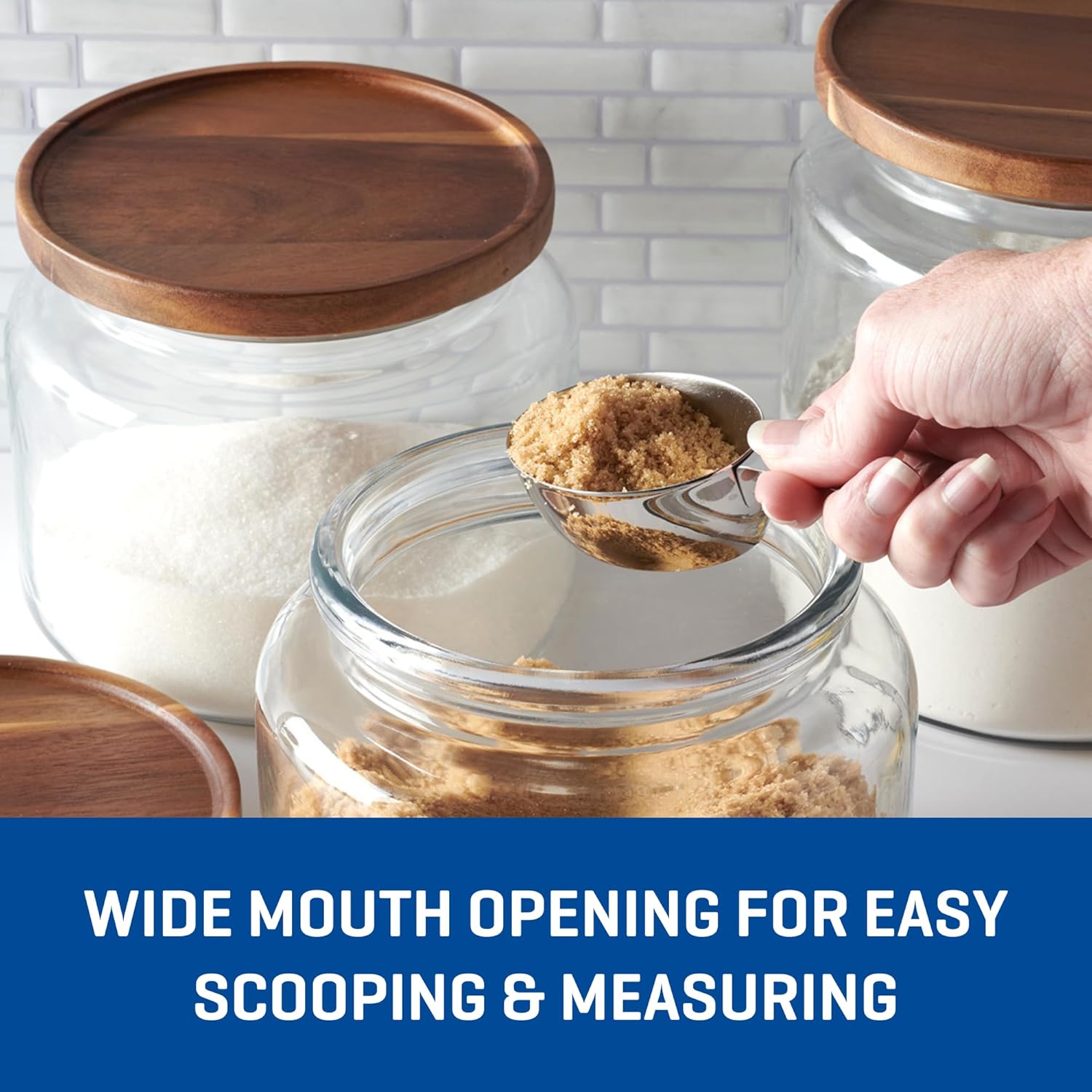 - THICK AND DURABLE: These glass jars with wood lids are wide-mouthed to ease scooping while protecting foods and their flavors. Jars are dishwasher safe. Handwash Acacia lids.