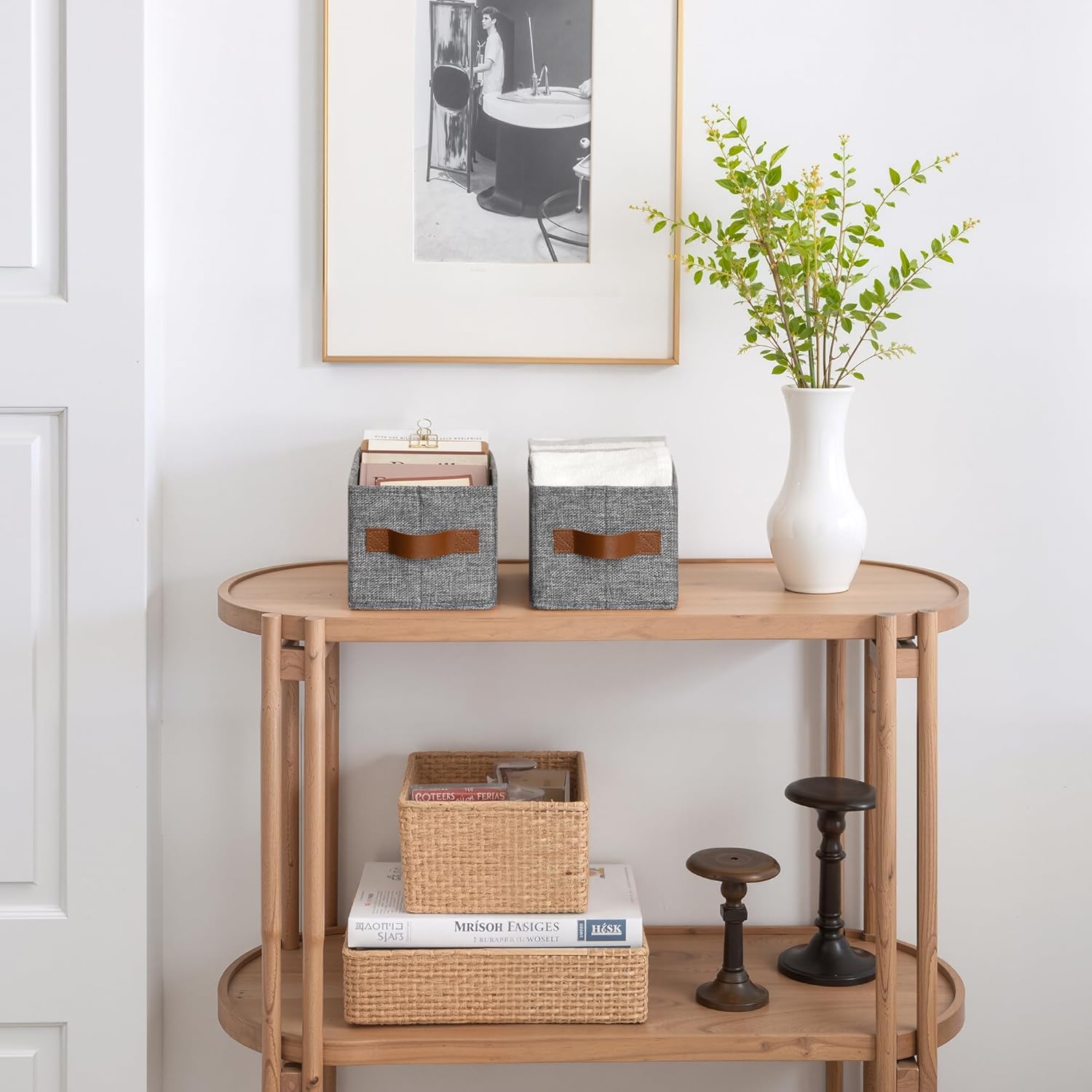 - Easy to Use with PU Handles: Features two PU leather handles that are securely stitched for comfortable grip. Easily pull out or carry the bin from shelves, closets, or tight spaces.