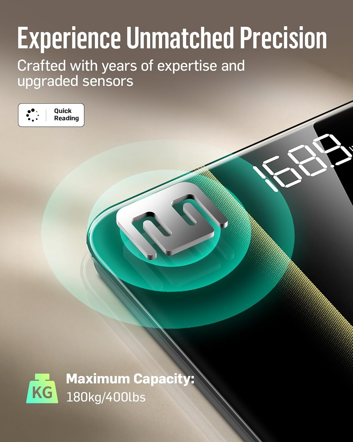 - ๐๐ ๐ฝ๐ฒ๐ฟ๐ถ๐ฒ๐ป๐ฐ๐ฒ ๐จ๐ป๐บ๐ฎ๐๐ฐ๐ต๐ฒ๐ฑ ๐ฃ๐ฟ๐ฒ๐ฐ๐ถ๐๐ถ๐ผ๐ป: With over 30 years of manufacturing expertise and equipped with four upgraded high-precision gravity sensors, this digital bathroom scale can weigh up to 400 lb/180 kg in increments of 0.1 lb/0.05 kg, providing quick and accurate readings every time