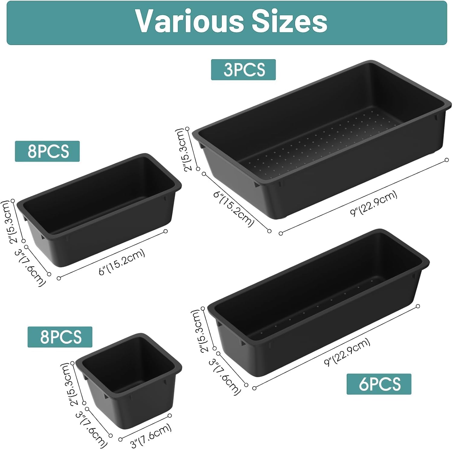 - Long Lasting and Non-Slip: The plastic has 3-5 times the impact strength of other materials and is robust and long lasting. The bottom of the storage organizers has a non-slip design to prevent the tray from moving around when the drawer is used