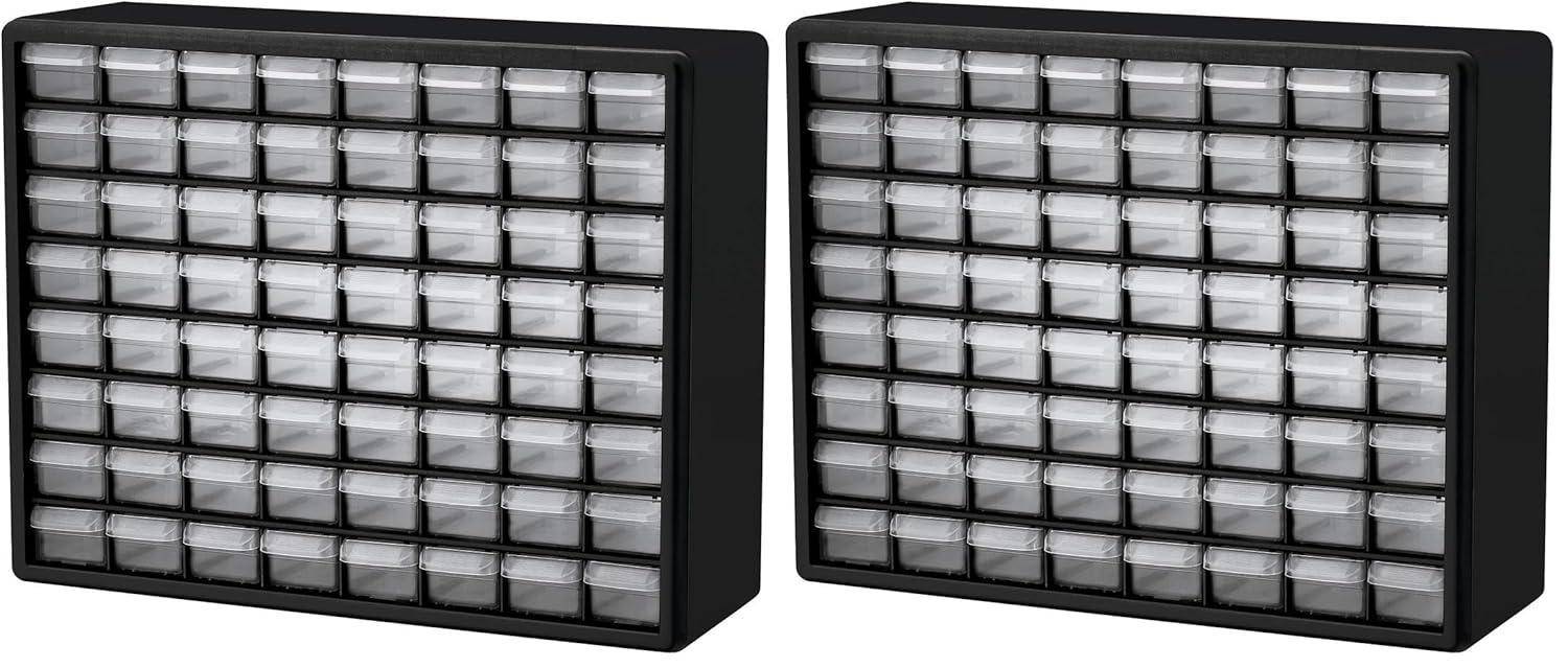 Akro-Mils 64-Drawer Plastic Storage Cabinet, 20-Inch W x 6-Inch D x 16-Inch H | Black | Model 10164 | Garage Organization