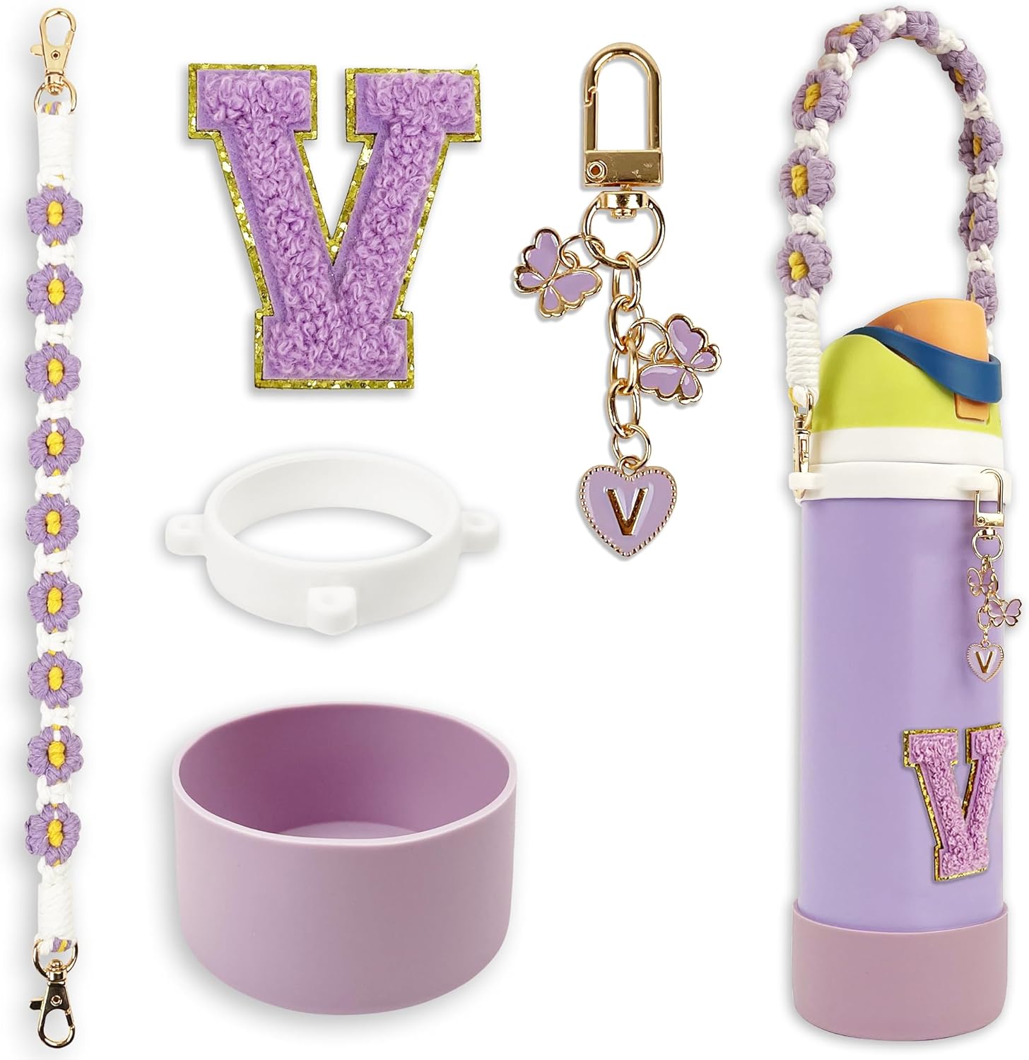 • Unique Design: Our set features a sturdy and secure silicone ring to prevent breakage, along with a handcrafted Bohemian-style handle strap, a monogram tag, and letter stickers. It’s both stylish and practical, making it an essential addition to your gear
