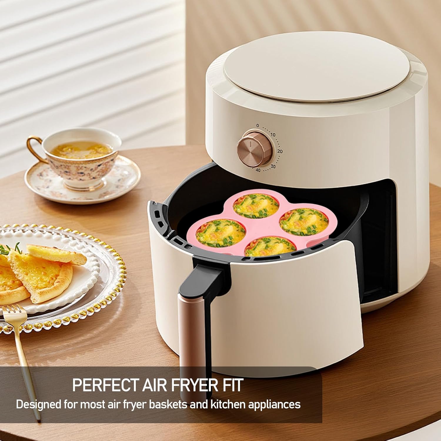 - 【Perfect Air Fryer Fit】 Compact 5.3"x5.3" base with 4 cups (2.1" diameter each) designed for most air fryer baskets and kitchen appliances.