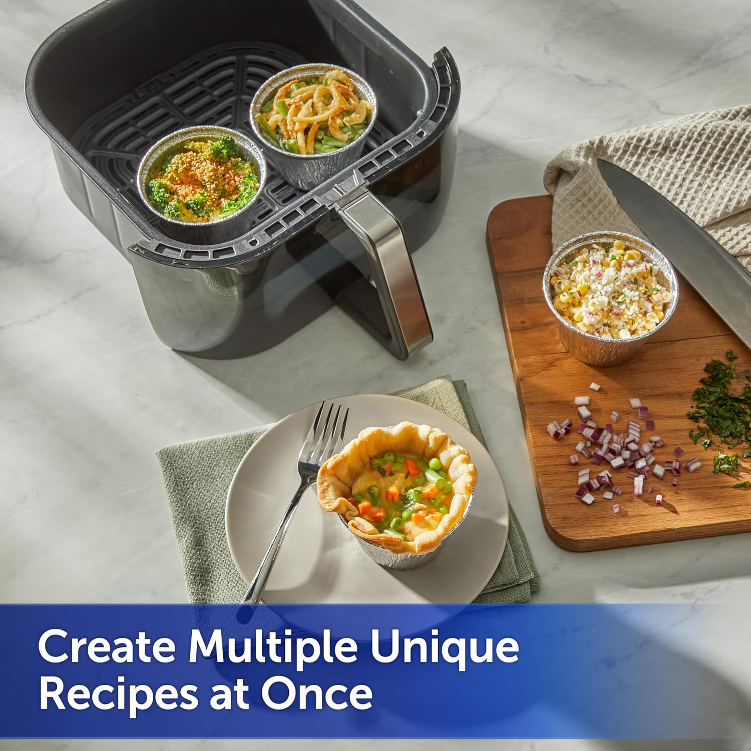 - Expand Your Air Fryer Food Choices—Make air fryer foods you never thought possible, like mac and cheese, egg bites, dips, muffins and more